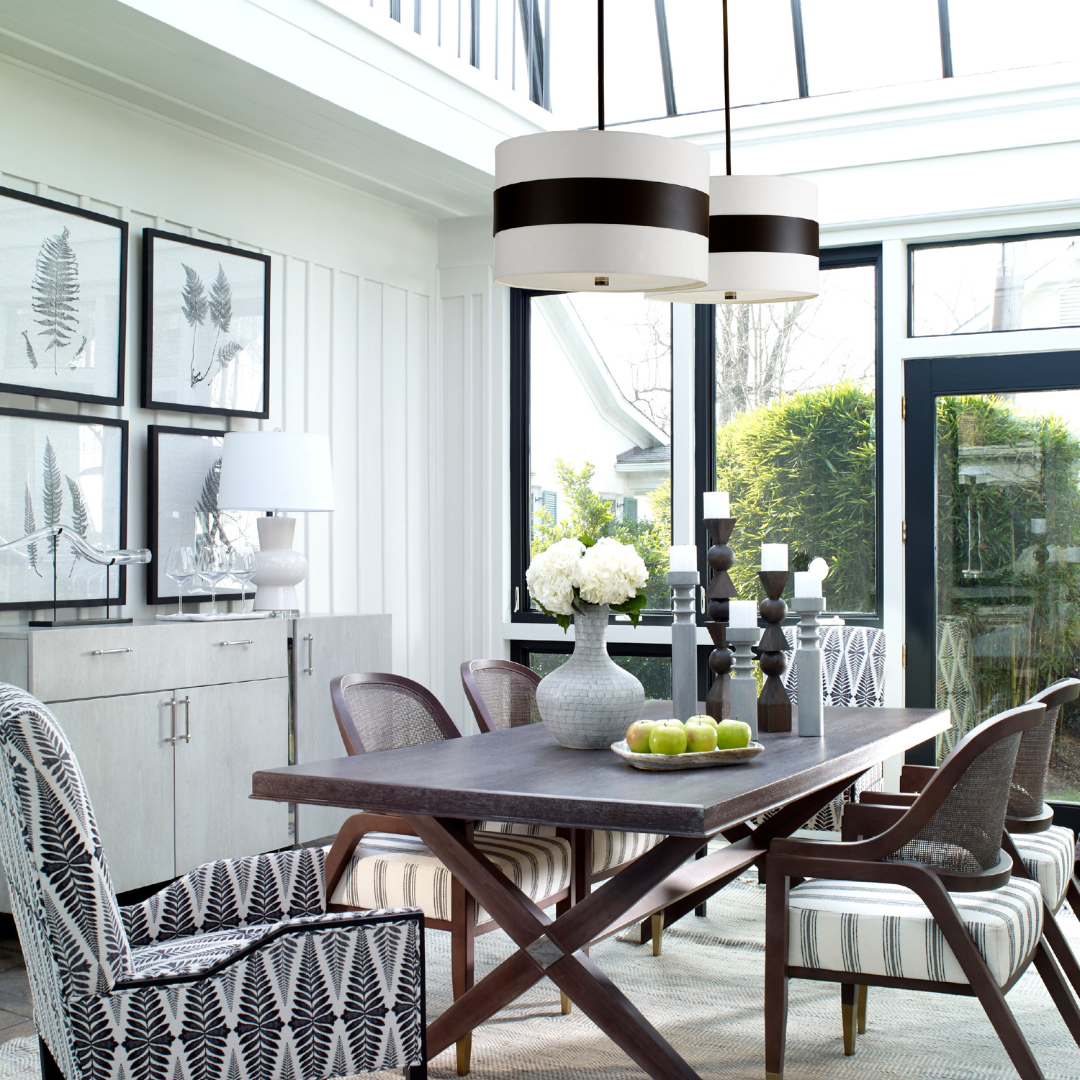 Drum shade pendant lights feature a cylindrical shade that surrounds the light source, with a soft, diffused glow. This look is versatile, fitting seamlessly into both contemporary and traditional decor, while adding a feeling of elegance and warmth.