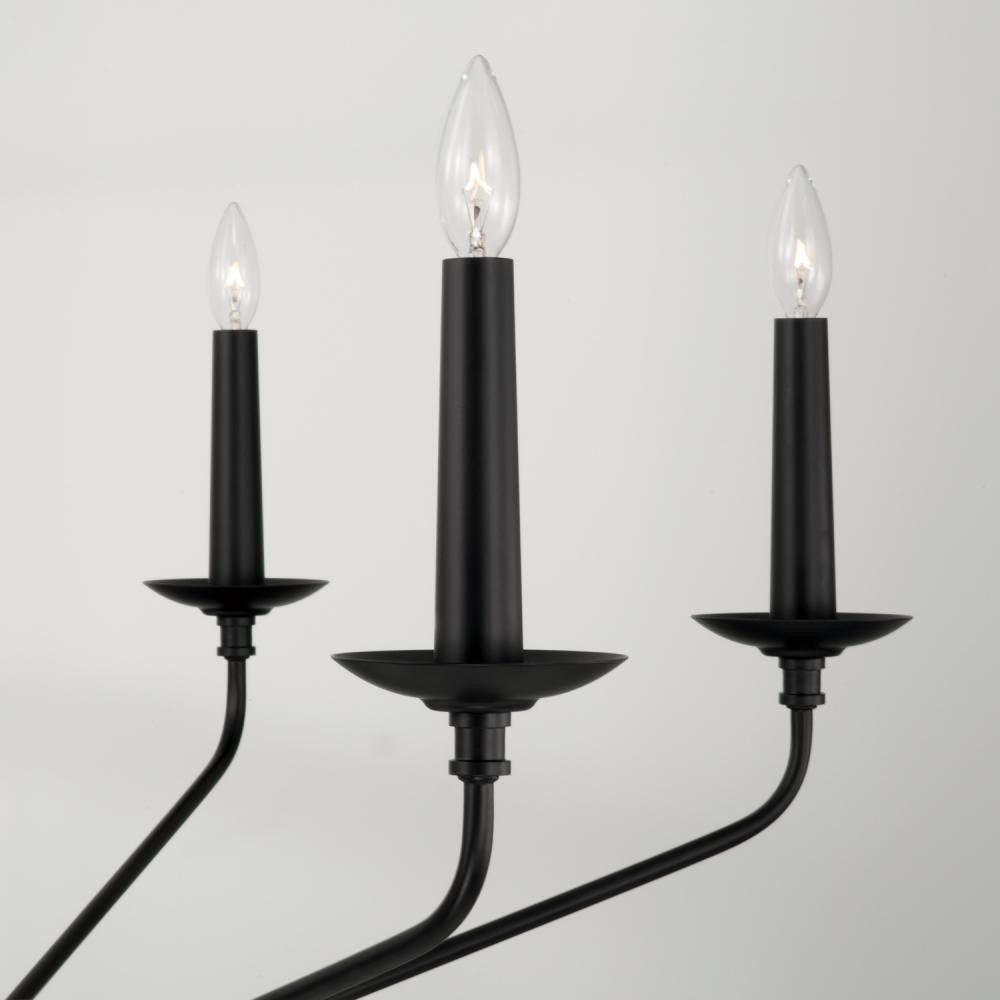 Pairing the Matte Black finish with designer details, the Wilder Large Chandelier brings classic elegance with an (optional) element of nature. Available in Faux Wood and Matte Black, the interchangeable candle sleeves create a custom-made feel for high design that suits any style.