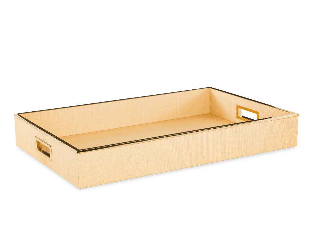 Natural texture meets elegant detail in the Large Raffia Tray by Maitland-Smith. Crafted from woven raffia and accented with polished brass hardware, this tray blends rustic charm with refined sophistication. Perfect for serving or as a decorative centerpiece, it adds warmth and style to any space.