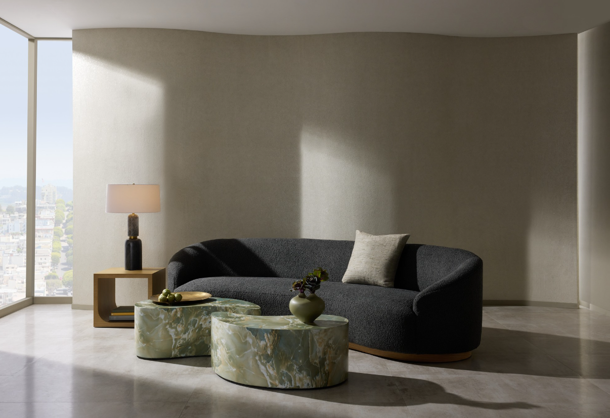 The yin and yang of design means flowing forms must be balanced with organic textures, and accents are always more impactful in pairs. This is why the faux marble Adeline was made as two parts of a whole. Crafted of concrete, it is both luxe and surprisingly lightweight. Adeline's jade marble-like facade is crafted through a process called hydrographics, assuring each piece will vary slightly in color and veining.