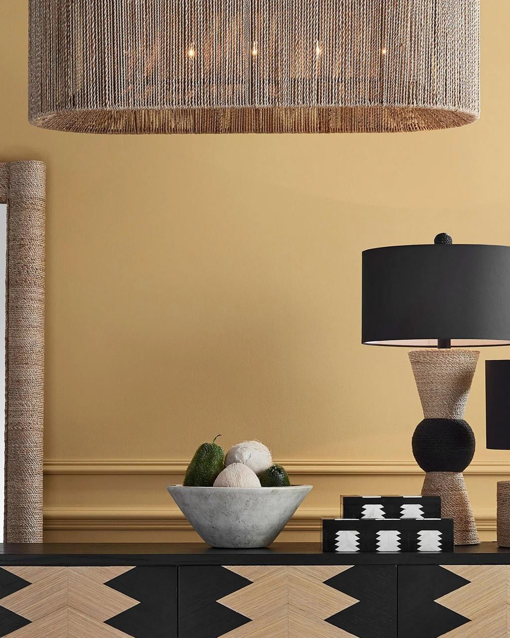 The Arrow Black & White Box Set, designed by Jamie Beckwith, is based on a strong graphic shape that comes alive with the contrast of bone and composite in ivory and black along the surface. Originally created in bold patterns for vertical and horizontal surfaces, Beckwith says of the Arrow, "This is a unique take on a chevron pattern. I was inspired by original French chevron parquets and this pattern is an updated version of that. There is a classic feel to this graphic shape with a modern take. It provides a strong underlying structure that bonds all the elements of a room together."