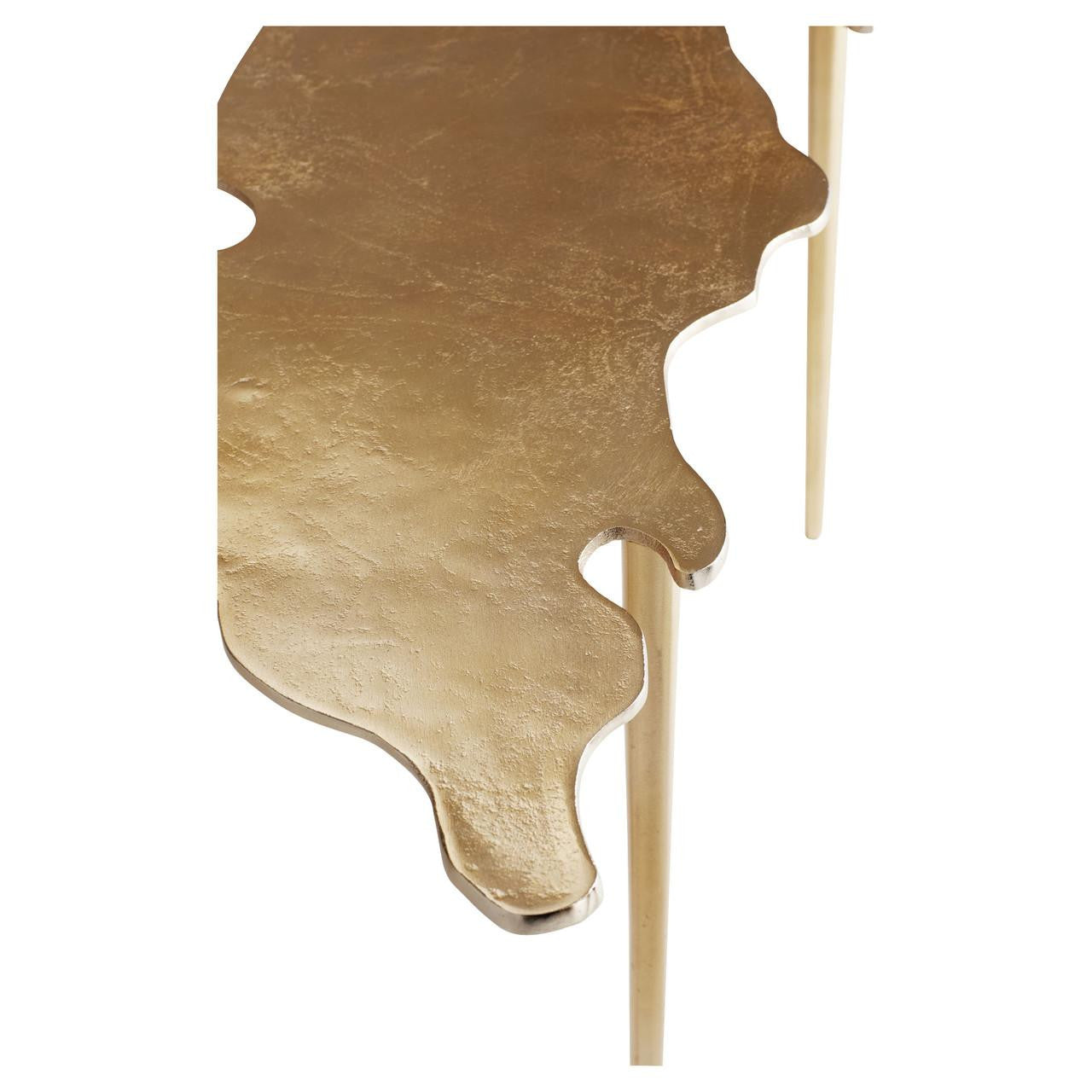 This table top features a unique and organic shape. It its freely formed to create a sense of movement and tranquility. Supported by four solid legs. This table is the perfect fit for any living room or entry way. Great for residential or commercial use.