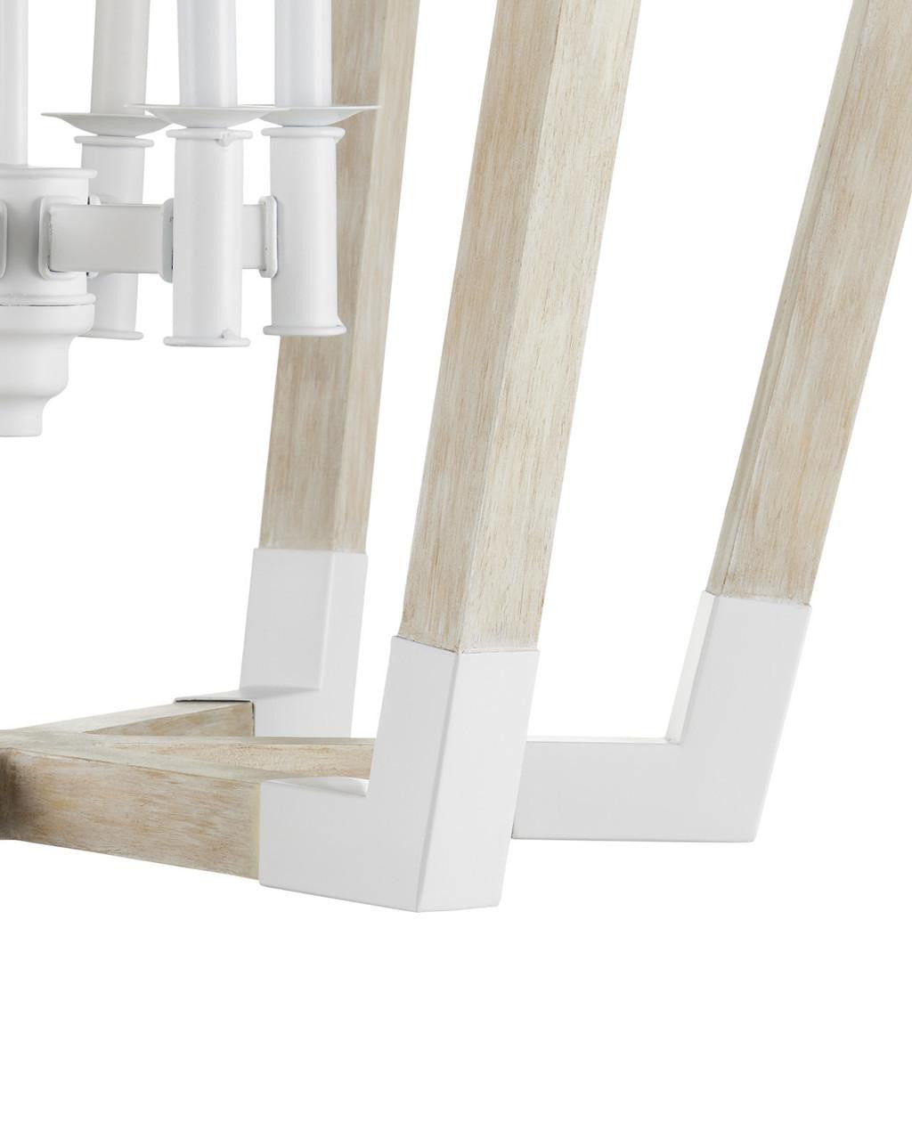 The Arts & Crafts movement inspired the design of the Bastian Large Sandstone Lantern, which is made of wrought iron and wood in sugar white and sandstone finishes. The crisp feel of the white metal clasping the spokes of washed wood brings extra sophistication to this lantern-shaped chandelier. Adjustable from 41" to 109" with use of included chain/rod kit/cable. If your space calls for a longer drop, additional chain/rods/cable is available for purchase.