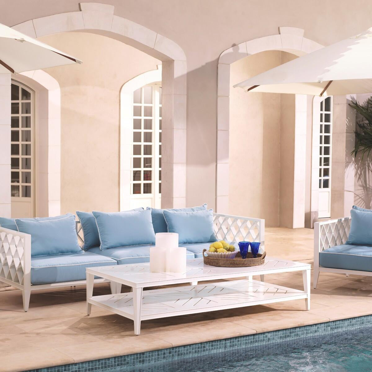 Made from heavy duty materials, the square Bell Rive Coffee Table is a stylish addition to your conservatory, veranda, patio or garden. With its sophisticated look and white finish frame, this attractive coffee table with openwork tabletop and lower shelf will make a great focal point for your outdoor living space.