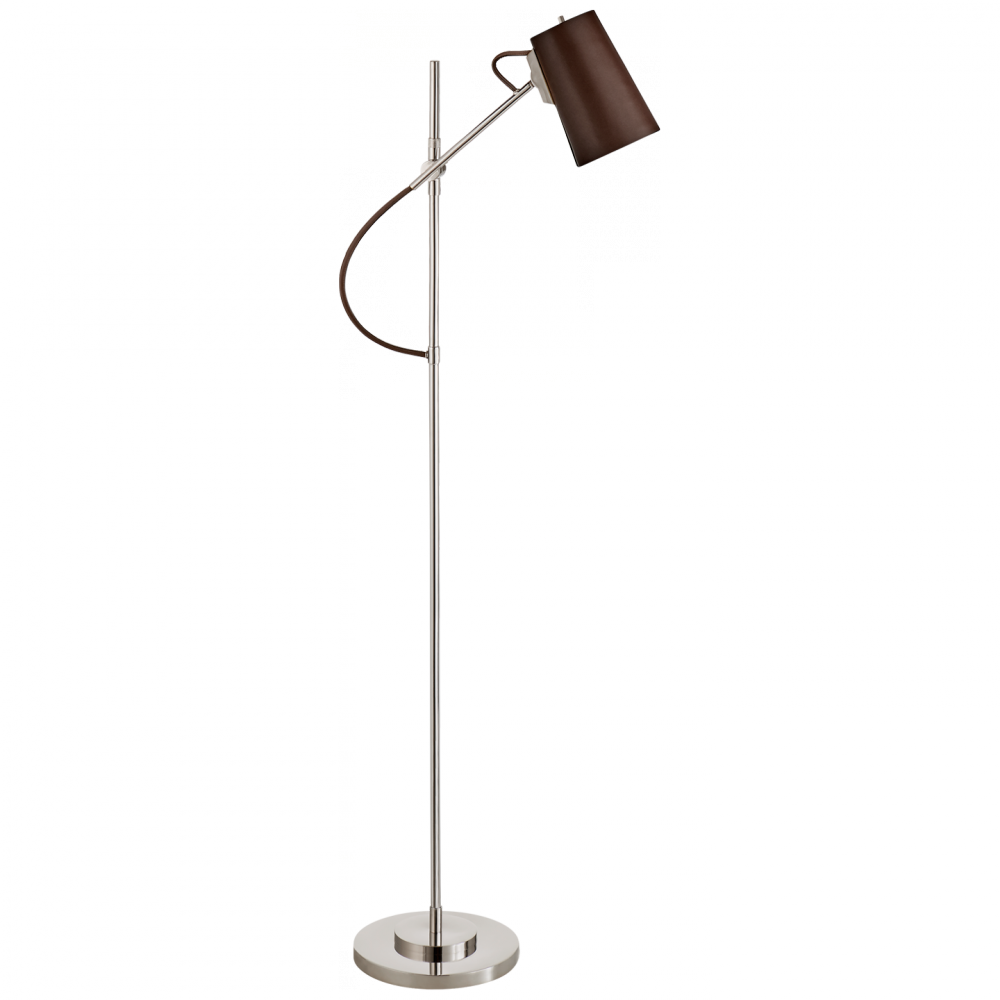The Benton by Ralph Lauren is both refined and functional. Articulated framework in solid brass or polished nickel allows adjustment of both height and length, focusing both light and mood as needed in libraries or living rooms. The smooth leather shades add a final touch of elegance.