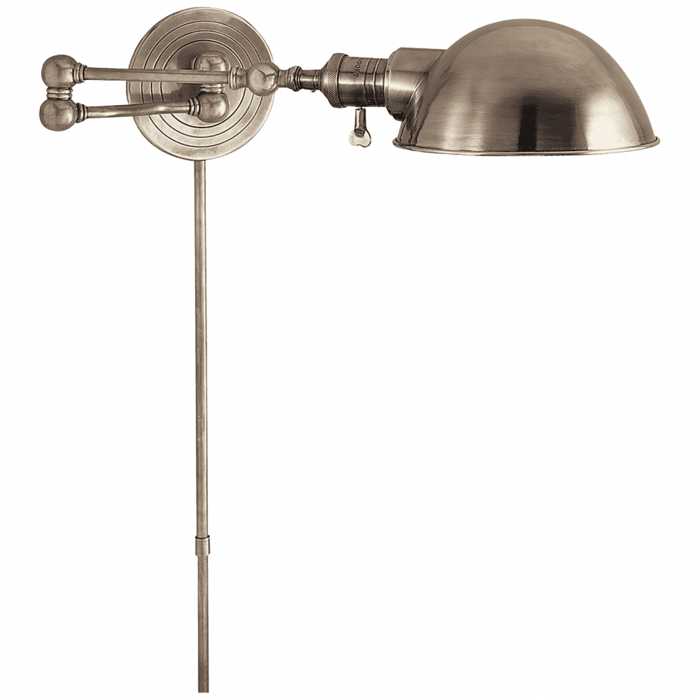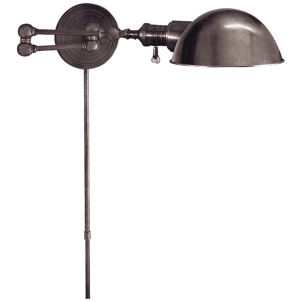 The Boston Swing Arm Wall Sconce brings a rustic edge to classic swing arm design, featuring vintage industrial tropes such as exposed hardware, decorative grooves, and balled joints. The fixture itself has a convenient multi-jointed body, allowing for easy positioning of its highly functional task lighting. The perfect reading companion, whether beside a bed or a reading chair.