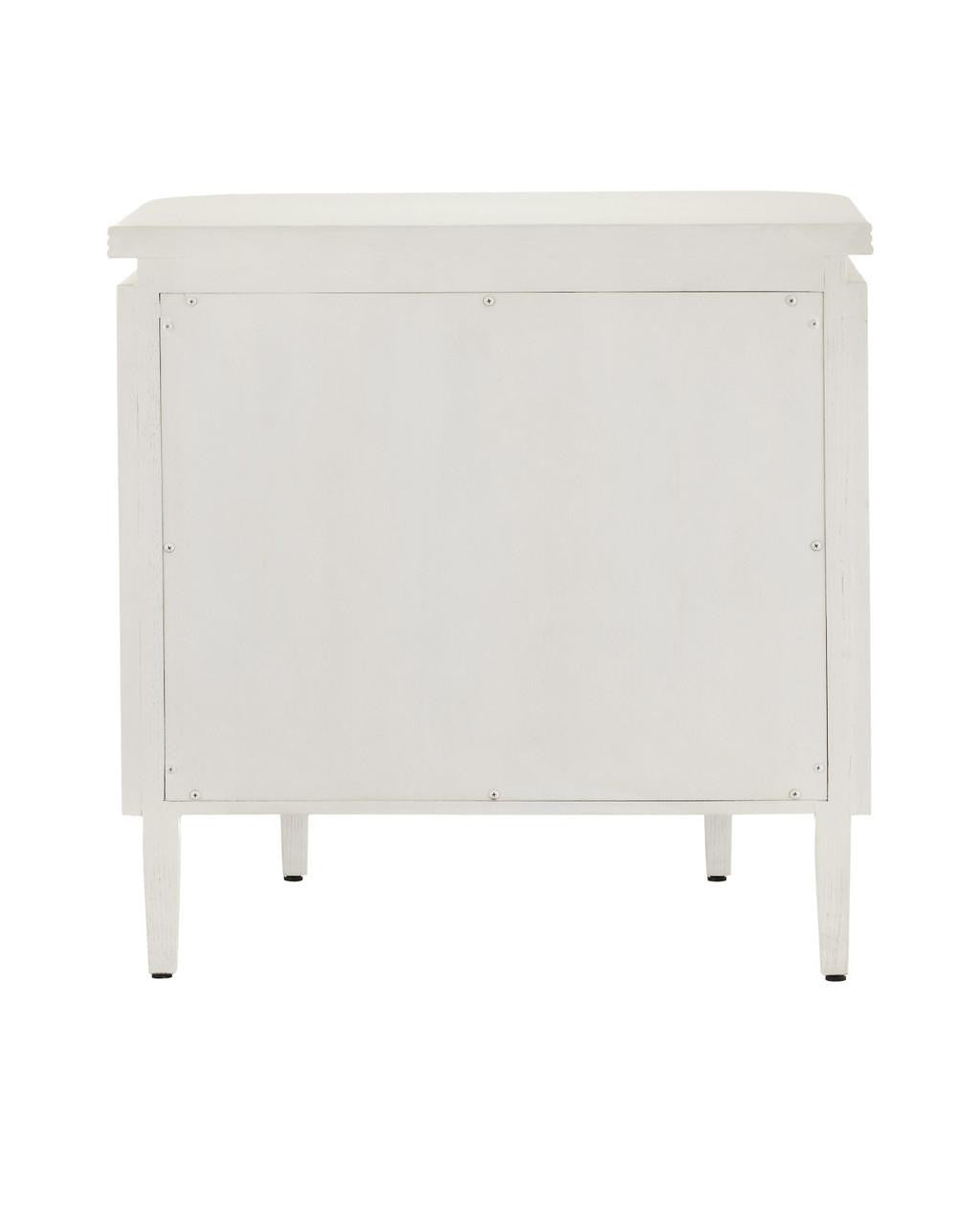 The impressively sized gold flower pull on the Briallen White Nightstand is a stunning ornamentation. A bright accent on the cerused white oak, the brass floral motif in a brass finish brings the white nightstand a sophisticated feel and illustrates the skill of our artisans who hand-cast the handle in brass. The two drawers on the nightstand are soft-close.