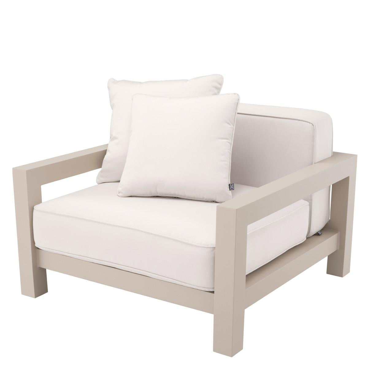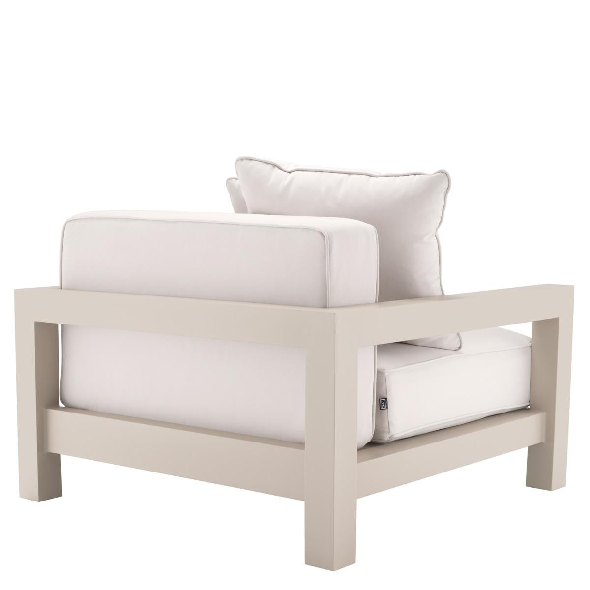 Standing out by a sleek design with simple lines, Chair Cap-Antibes adds contemporary style to your outdoor decor. This luxurious sofa is expertly crafted from durable aluminium and provided with a powdercoated sand finish. Its seat and back cushions are upholstered in Sunbrella canvas.