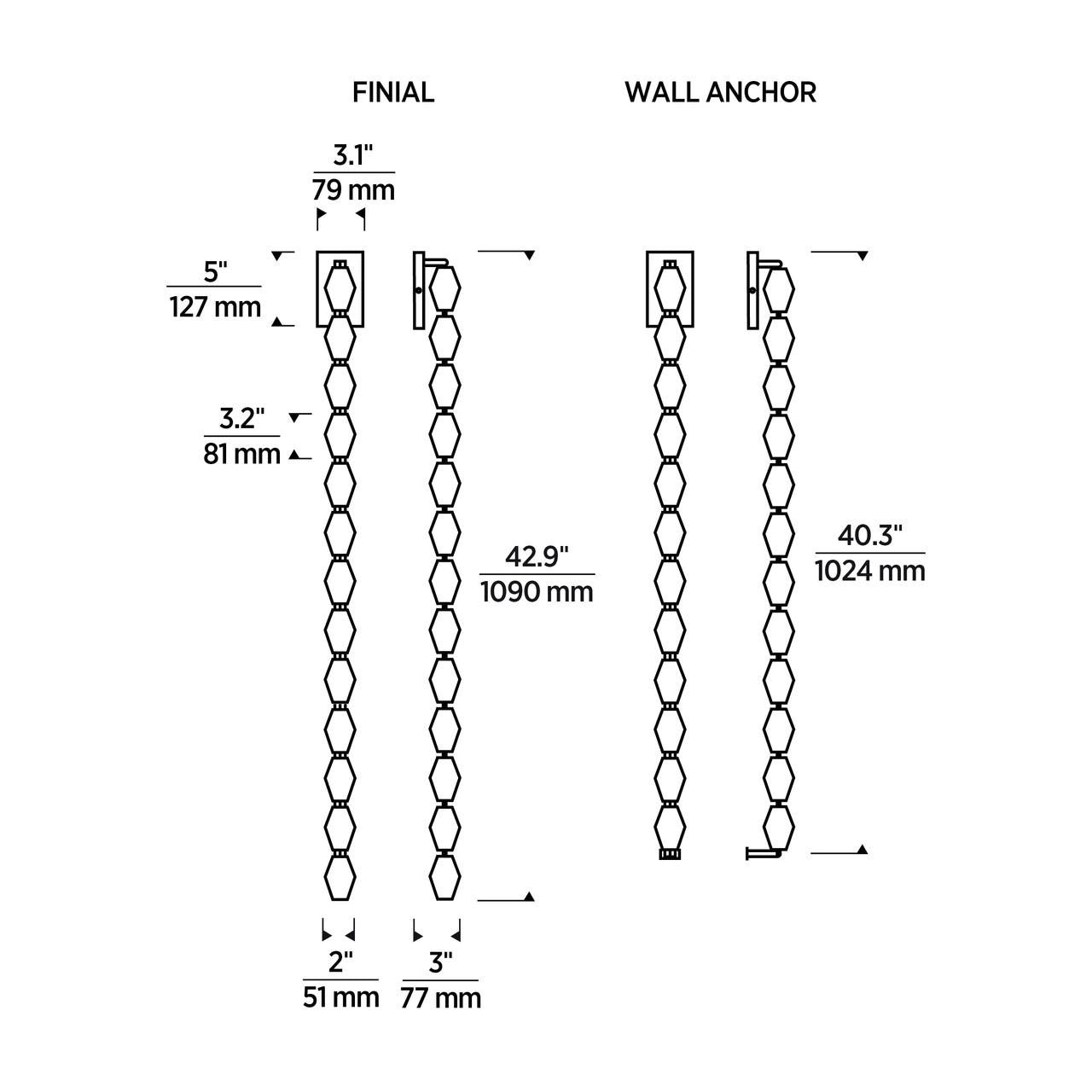 - Dimensions: 40.3"H x 3.1"L x 3"W