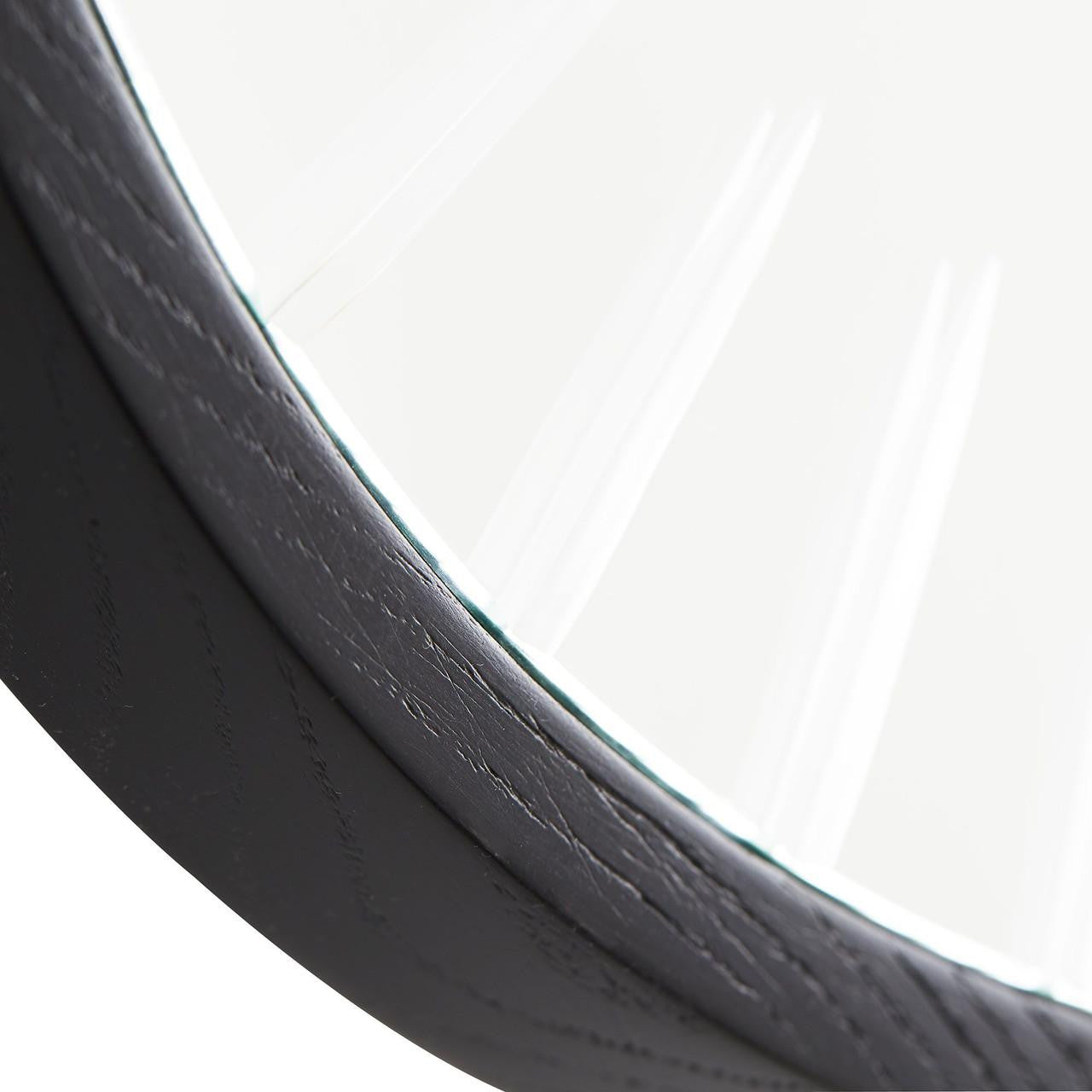 The Cut Oblong Mirror offers a modern twist on traditional technique, pairing streamlined forms with detailing that brings to mind timeless cut crystal. The generously-proportioned oblong wall mirror, featuring an etched gradient slice pattern raDiameterting in from its edge, is set within a sleek black-painted wood frame. Security cleat hanging hardware allows for horizontal or vertical display.