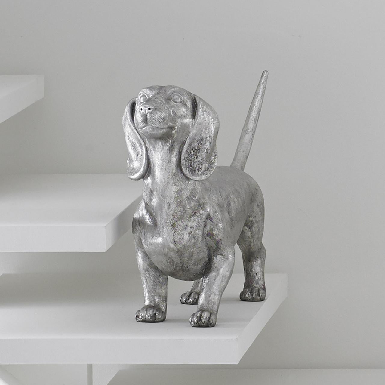 Cast in artisan-grade resin and hand finished in silver leaf, this realistic canine make a glamorous pet.