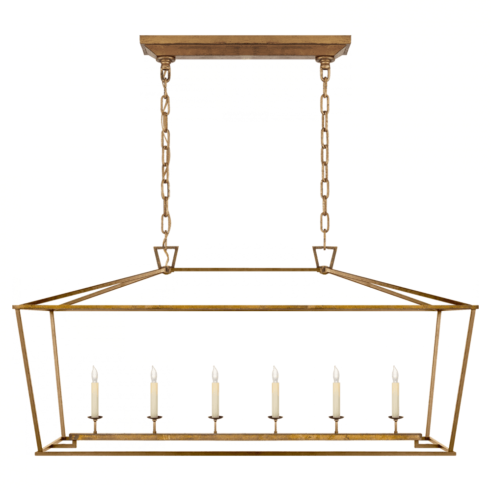 The Darlana Linear Chandelier by Visual Comfort brings a touch of old-world charm to any living space. This fixture produces an ambient glow, making it perfect for installation over a dining table or kitchen island.