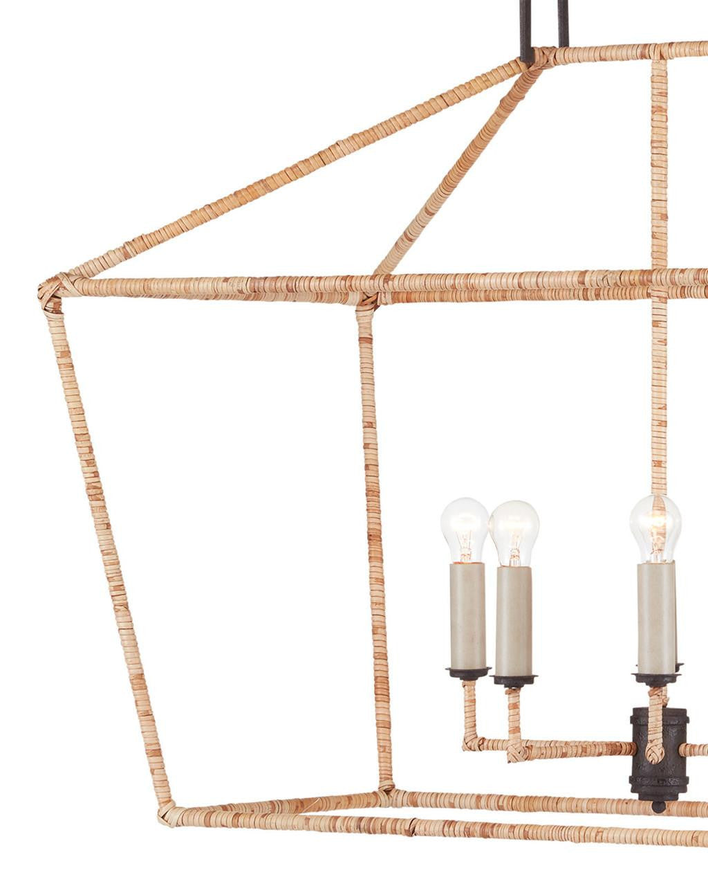The Denison Rattan Rectangular Lantern is a hammered wrought-iron fixture in a Mole black finish that is wrapped in rattan. The classic lantern shape has stood the test of time to make it one of our most popular offerings. A design element of note is the square that fastens the lantern to the chain. Adjustable from 36" to 107" with use of included chain/rod kit/cable. If your space calls for a longer drop, additional chain/rods/cable is available for purchase.