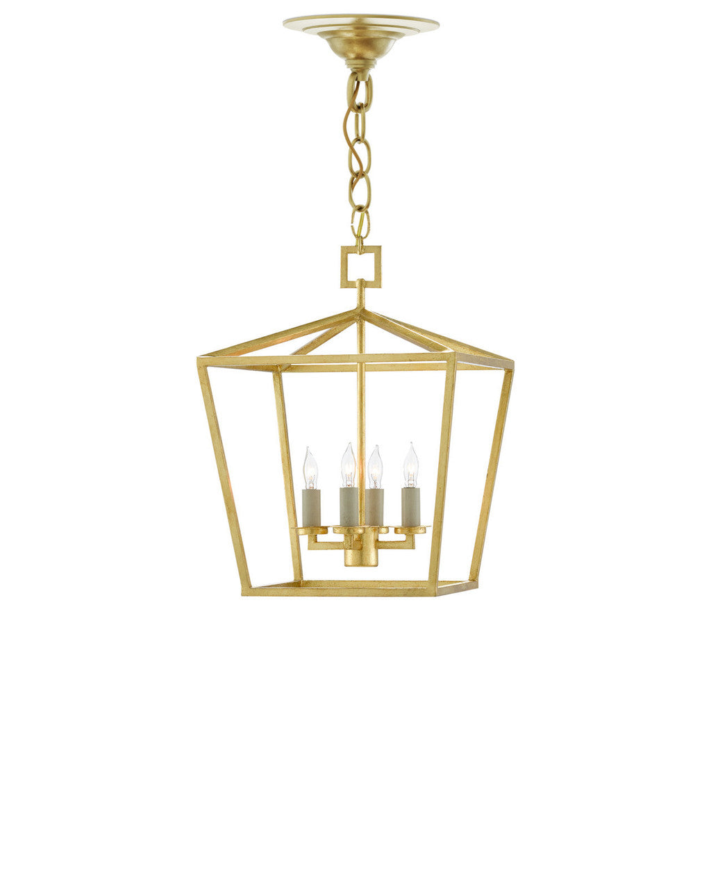 The Denison Gold Small Lantern strikes a cagey silhouette, its hammered wrought-iron frame encasing the lantern’s glowing bulbs subtly distressed with a contemporary gold leaf finish. This classic shape has stood the test of time to illuminate nearly every room in the home in its various manifestations. We offer a number of sizes and finishes in the Denison Lanterns.