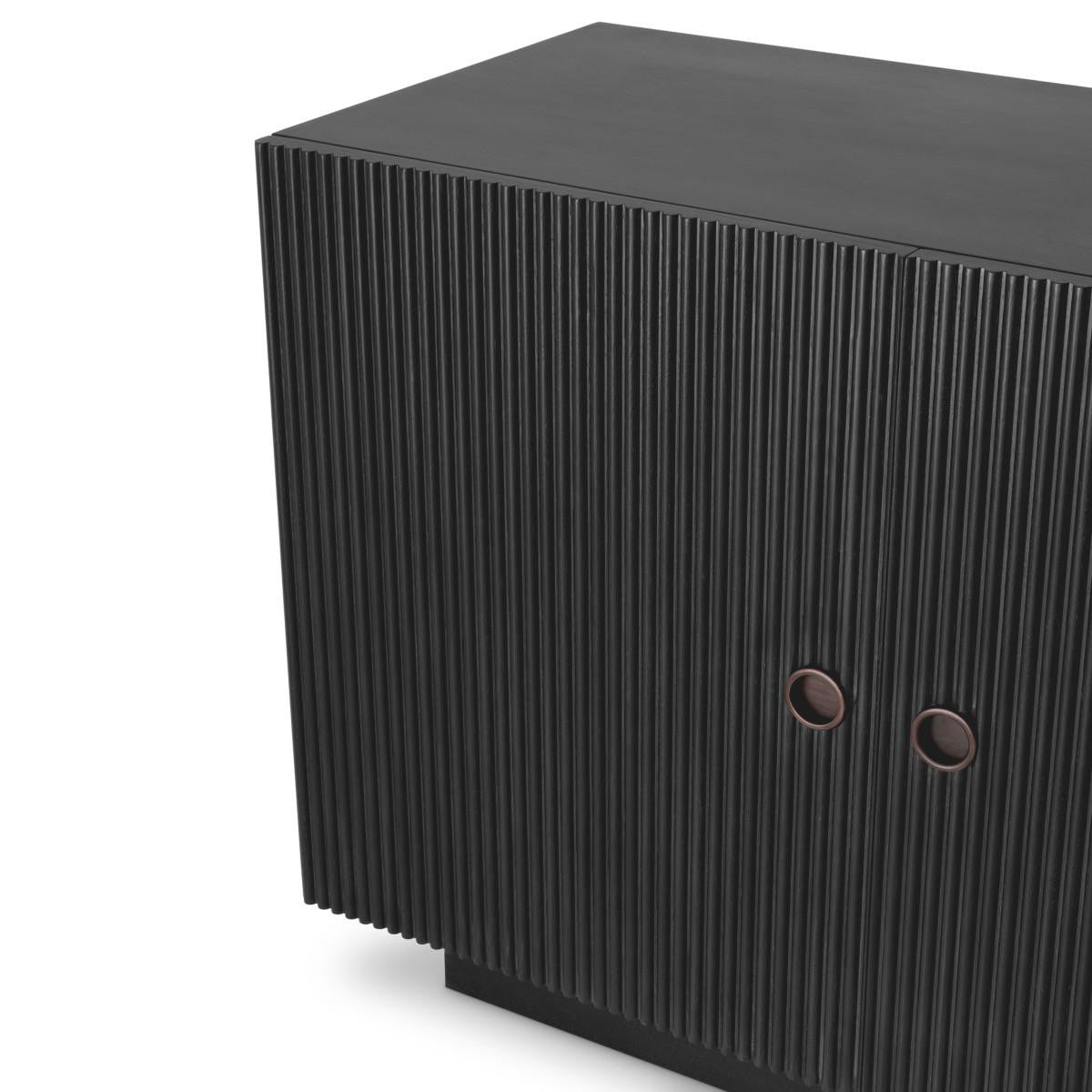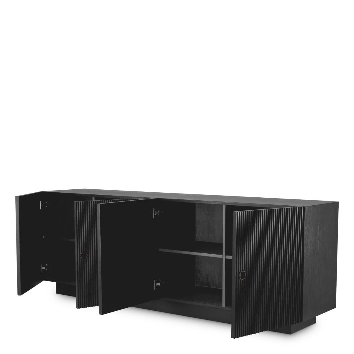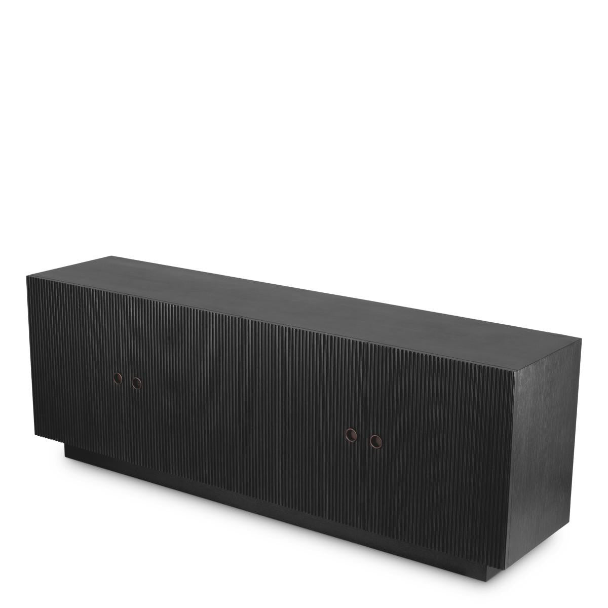 Dresser Dimitrios allows you to store favourite keepsakes and other essentials while adding exclusive style to your home. Sleek and stylish, this sideboard with ribbed door panels adds a touch of Mid-Century Modern chic to your living space. Its vintage-inspired design has a solid body with charcoal grey oak veneer and bronze finish hardware.