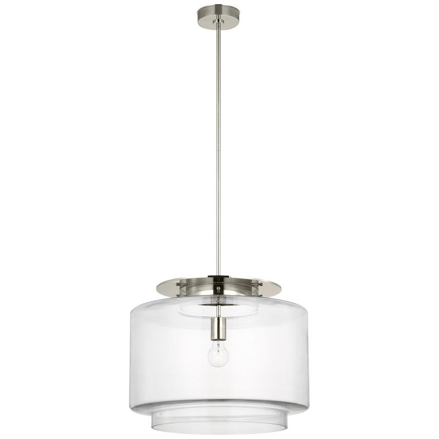 The Elias Pendant from Visual Comfort Signature, designed by Ray Booth, effortlessly commands attention with its elegant materials and clean lines. Its minimalist round canopy is complemented by a smooth disc above the light source, creating a layered design that merges style with subtle detail. Crafted with polished brass hardware, this pendant features a glass drum shade that gently diffuses a warm, inviting glow, enhancing any space with its sophisticated ambiance.