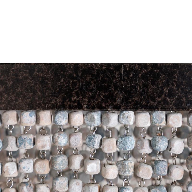 The Linear Etienne Chandelier captivates with its artful arrangement of wooden beads, featuring a blend of antique white, dusty slate, and rust finishes. Handpainted square wooden beads in shades of antique white and dusty slate cascade in aligned layers, creating a look reminiscent of the glamorous beaded flapper dresses of the 1920s. This chandelier adds a sophisticated and enchanting touch to any space.