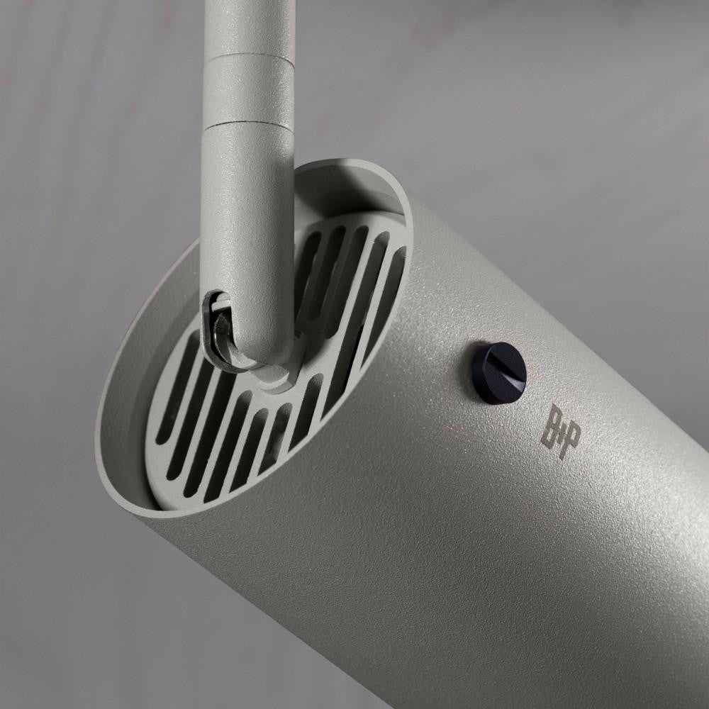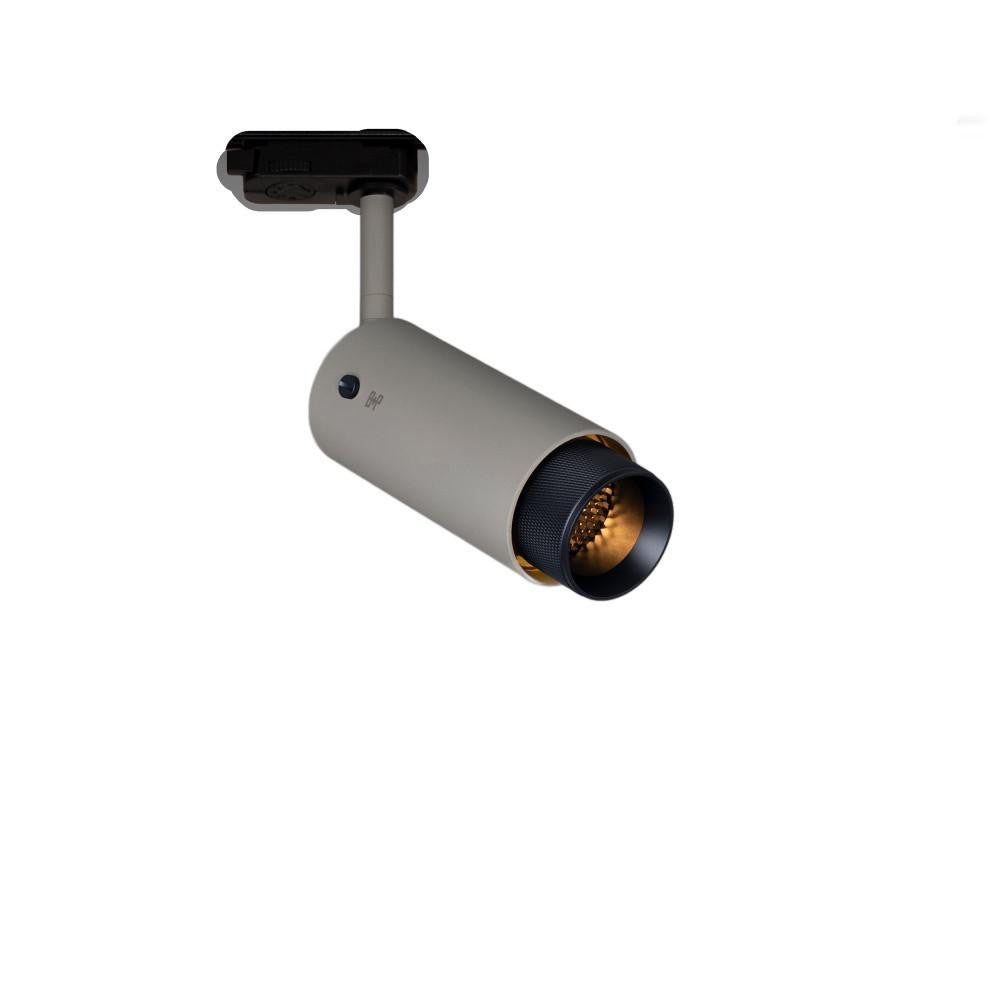 A track spotlight made from stone powder coated metal with solid gun metal detailing.