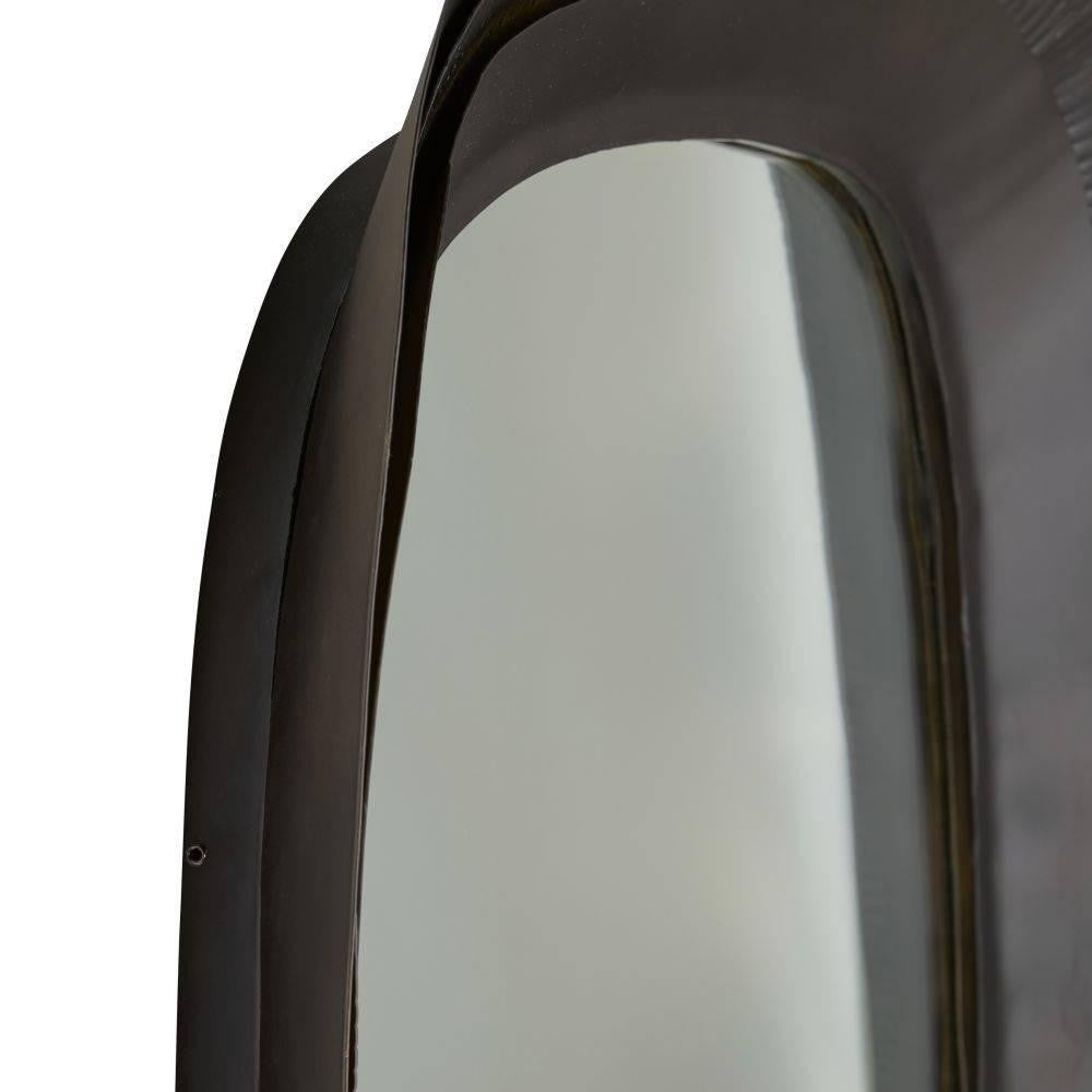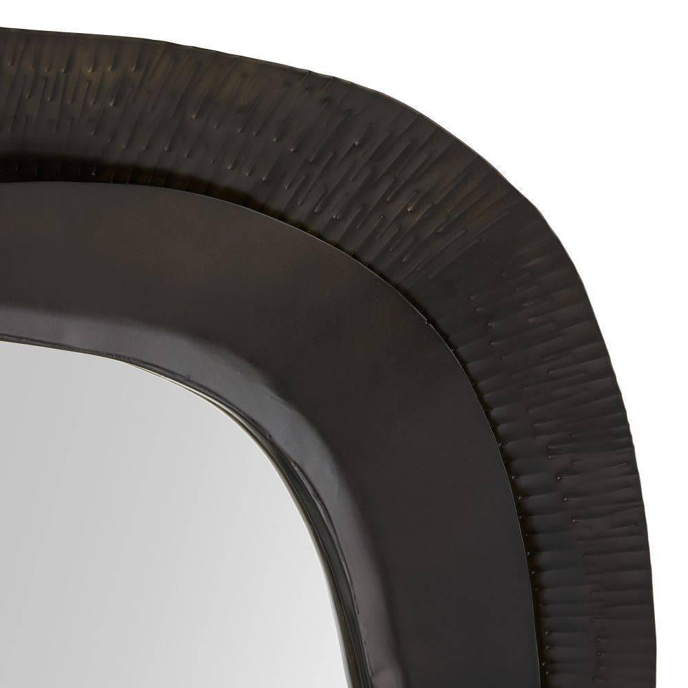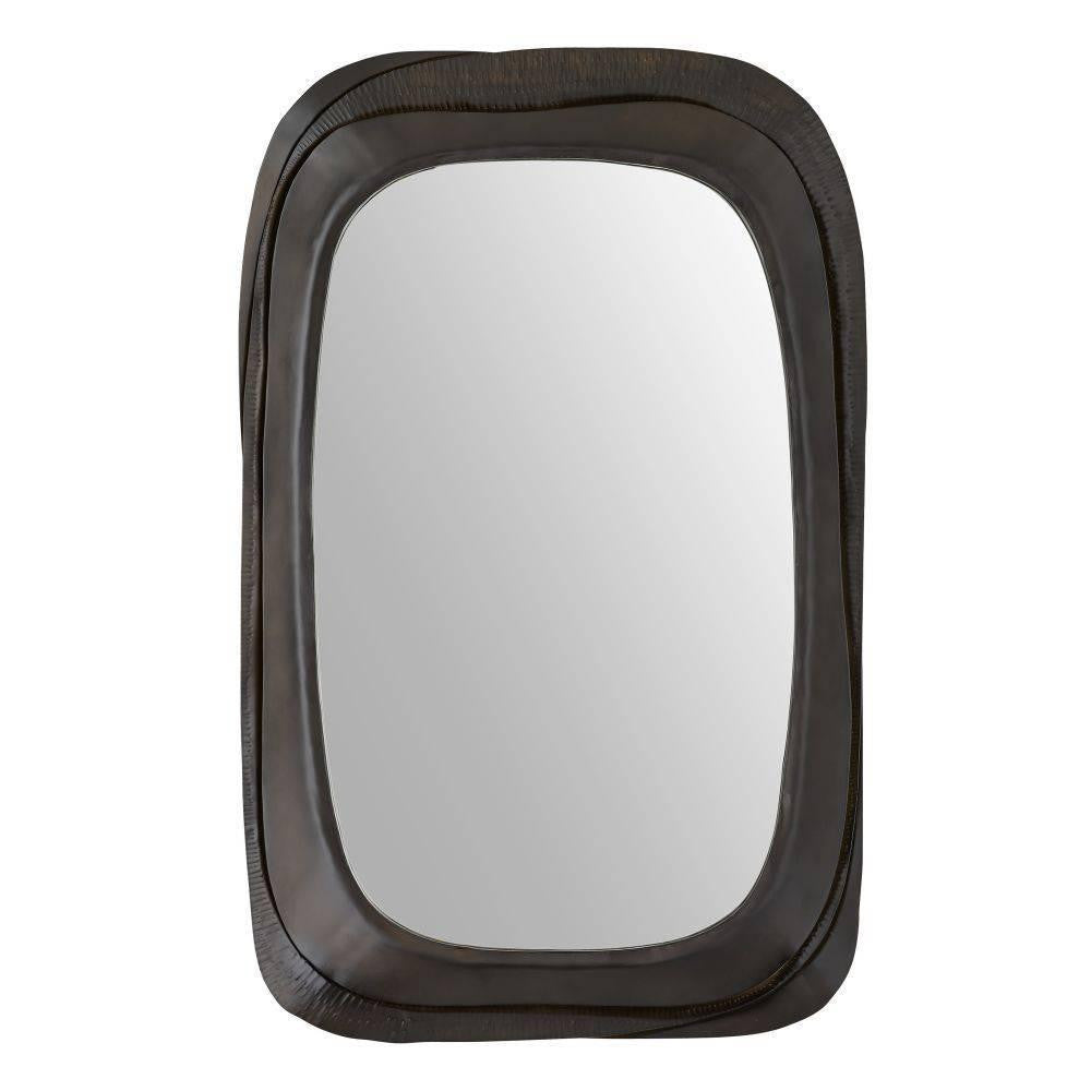Forged iron frame is finished with organically shaped curved edges for a petal-like finish. Plated in bronze, it was designed to let the accent texture come to life when lit on either side for a layered effect. Designed to be displayed both vertically and horizontally. Secured at the back with a cleat attachment.