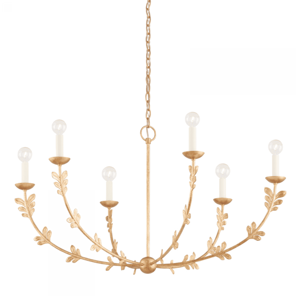 Florian is a real natural beauty. Classic candle-shaped bulbs "sprout" from arms adorned with little leaves, reminiscent of flower stems. The textured Black Iron, Vintage Gold Leaf or White Gesso finish add to the fixture's organic feel. This pretty piece will bring a sense of peace to any space.
