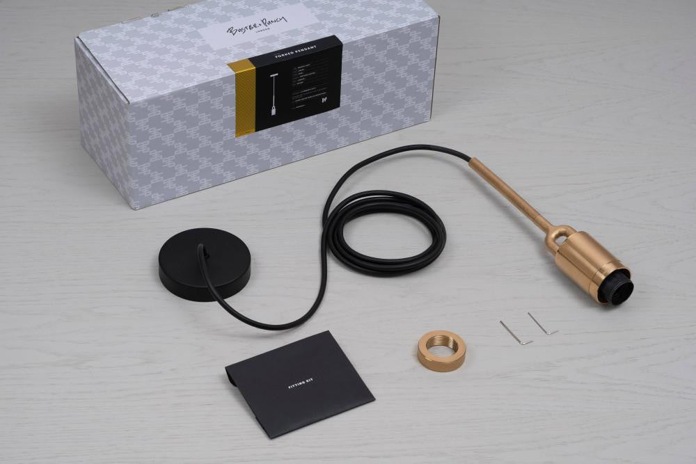 A light pendant, combining machined and cast solid metal, all refined by hand. It features our cast forked detailing and signature diamond-cut linear knurling. The light comes complete with a handblown smoked glass globe and Forked-specific dimmable Buster Bulb, casting a soft decorative glow in this configuration.