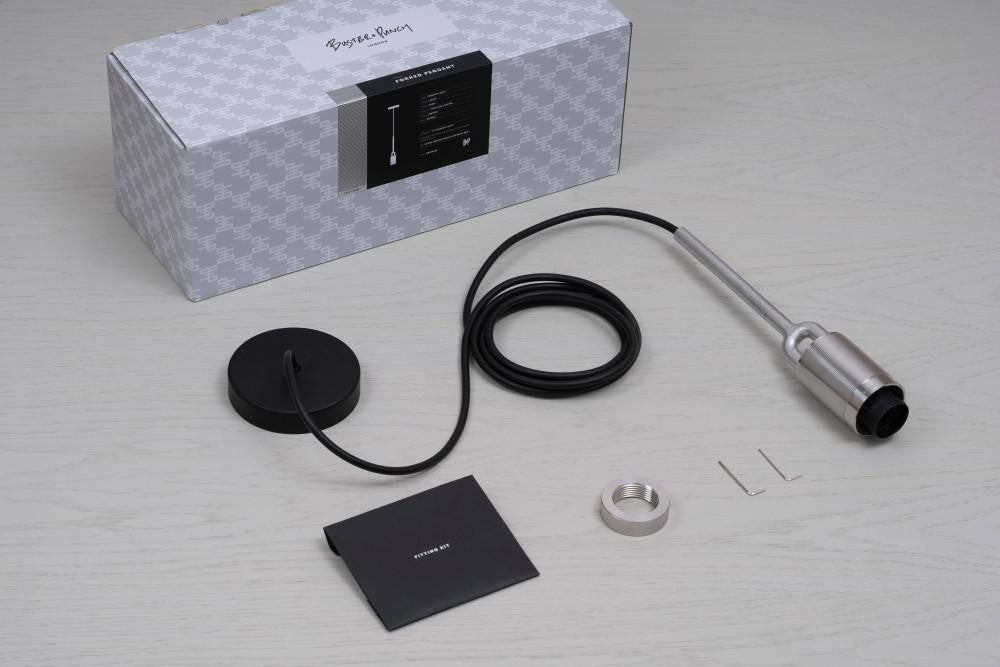A light pendant and shade, combining machined, hand-spun and cast solid metal, all refined by hand. It features our cast forked detailing and signature diamond-cut linear knurling. The light comes complete with a handblown opal glass globe and Forked-specific dimmable Buster Bulb, casting a functional ambient light in this configuration.