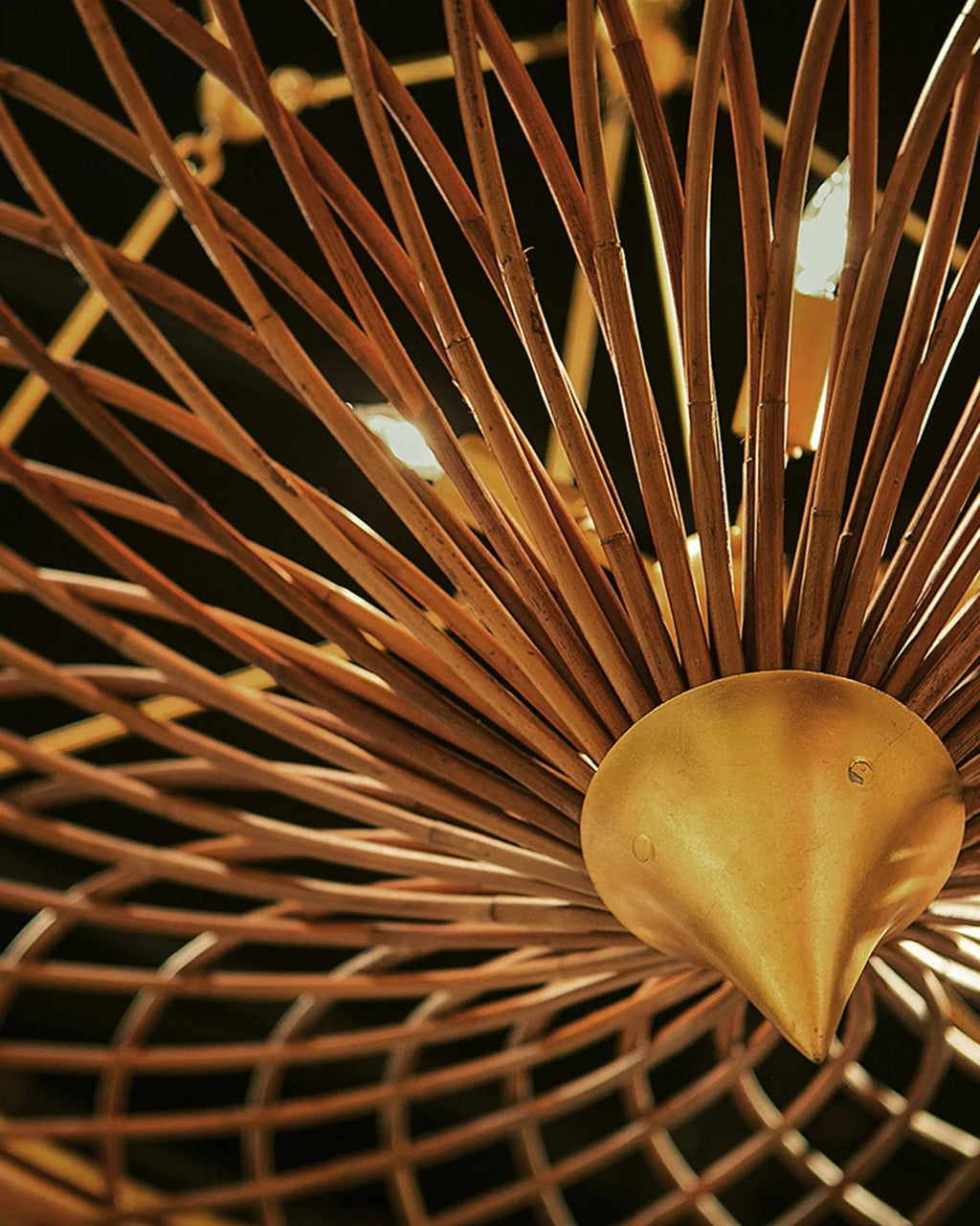 Working with natural materials like rattan is a strong suit of our artisans, who've taken the reeds and woven them into a work of art in our Gaborone Chandelier. The frame is made of wrought iron in a contemporary gold leaf finish. The hanging hardware on this natural rattan chandelier and the pointed cap at its bottom-most point add to the warmth of this lovely fixture. Adjustable from 46.5" to 113" with use of included chain/rod kit/cable. If your space calls for a longer drop, additional chain/rods/cable is available for purchase.