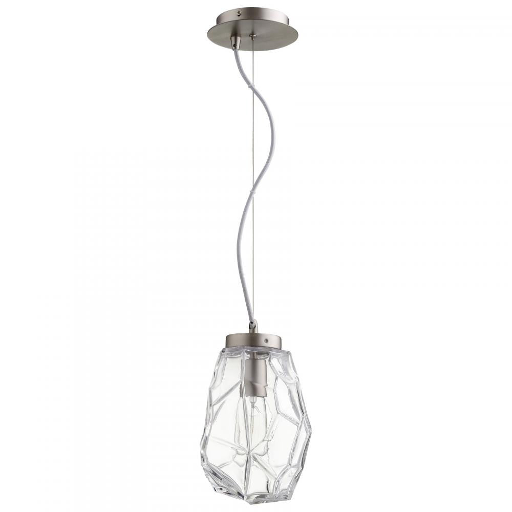 Add dimension to a bare nook with this stunning clear glass pendant light. A faceted, geometric glass shade provides a worthy focal point. This captivating shade pairs with a curvaceous center cord, for a thoroughly stylish look.