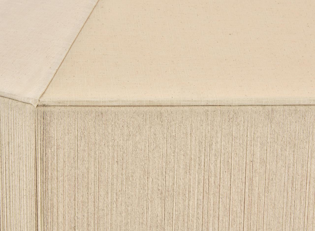 Elegant yet edgy, Lyla’s geometric Oatmeal Linen shade with a textured, wrapped middle band is suspended from refined Lacquered Brass micro-chains – inspired by delicate jewelry designs. A Lacquered Brass canopy, dimmable lamping, and etched white glass diffuser add subtle warmth and a sophisticated atmosphere to the surrounding space.
