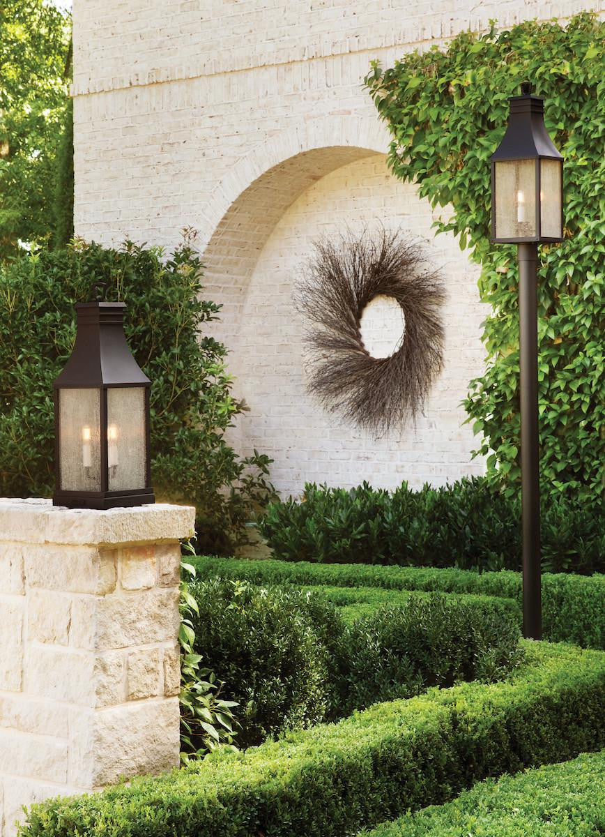 Taking inspiration from an English lantern, Beacon Hill achieves a timeless aesthetic. Part of the Heritage collection, this traditional style features a striking Blackened Copper or Museum Black aluminum frame. The heavily seeded glass pays homage to its Old World charm.