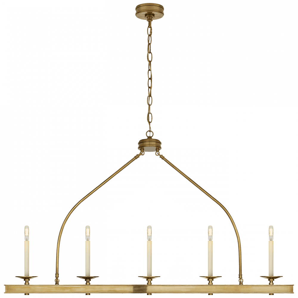The Launceton Linear Pendant Light by Visual Comfort brings an air of sophistication and elegance to any contemporary setting. Perfect for accentuating kitchen islands or dining areas, this striking fixture showcases delicate candelabra-style bulb holders set above a sleek tubular base with refined metal detailing. Its dramatic design is perfect for creating a bold, theatrical atmosphere, making it an eye-catching statement piece in any space.