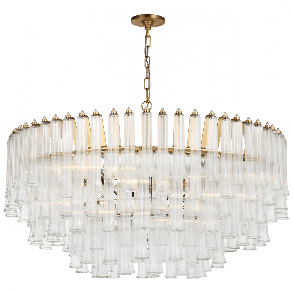 The Lorelei by Julie Neill showcases elegant, fluted glass tubes thoughtfully arranged in cascading, concentric circles around a polished frame. Reminiscent of art deco fringe, the fixtures will lend a decadent touch to any space, both small and grand rooms alike.