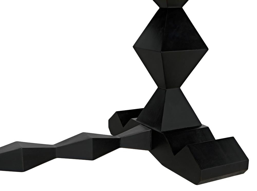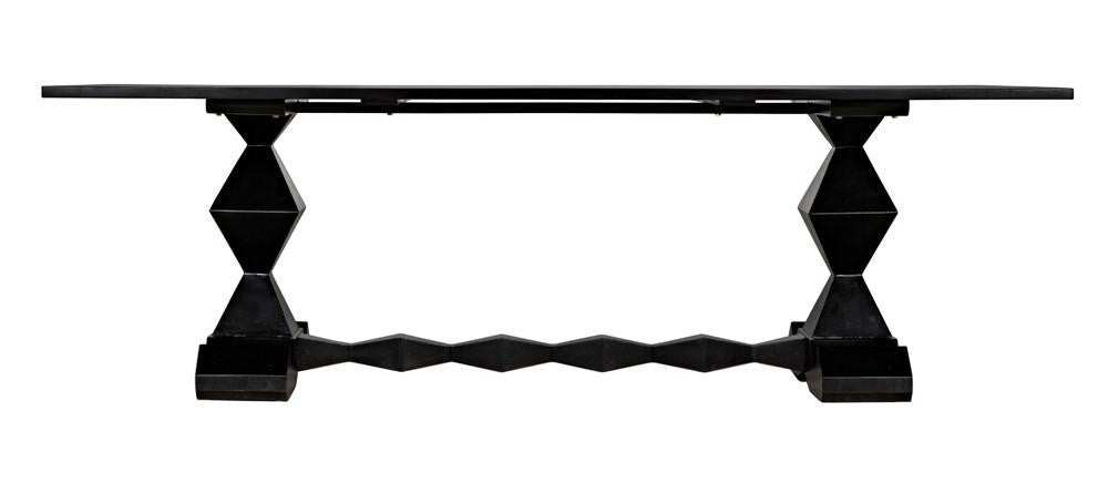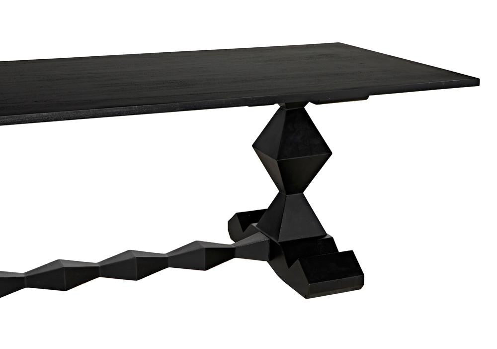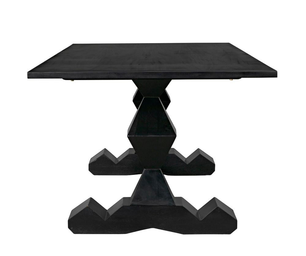 The Madeira Dining Table has been hand-carved of solid mahogany & enhanced with a hand-rubbed black finish. Its perfect for any dining room.
