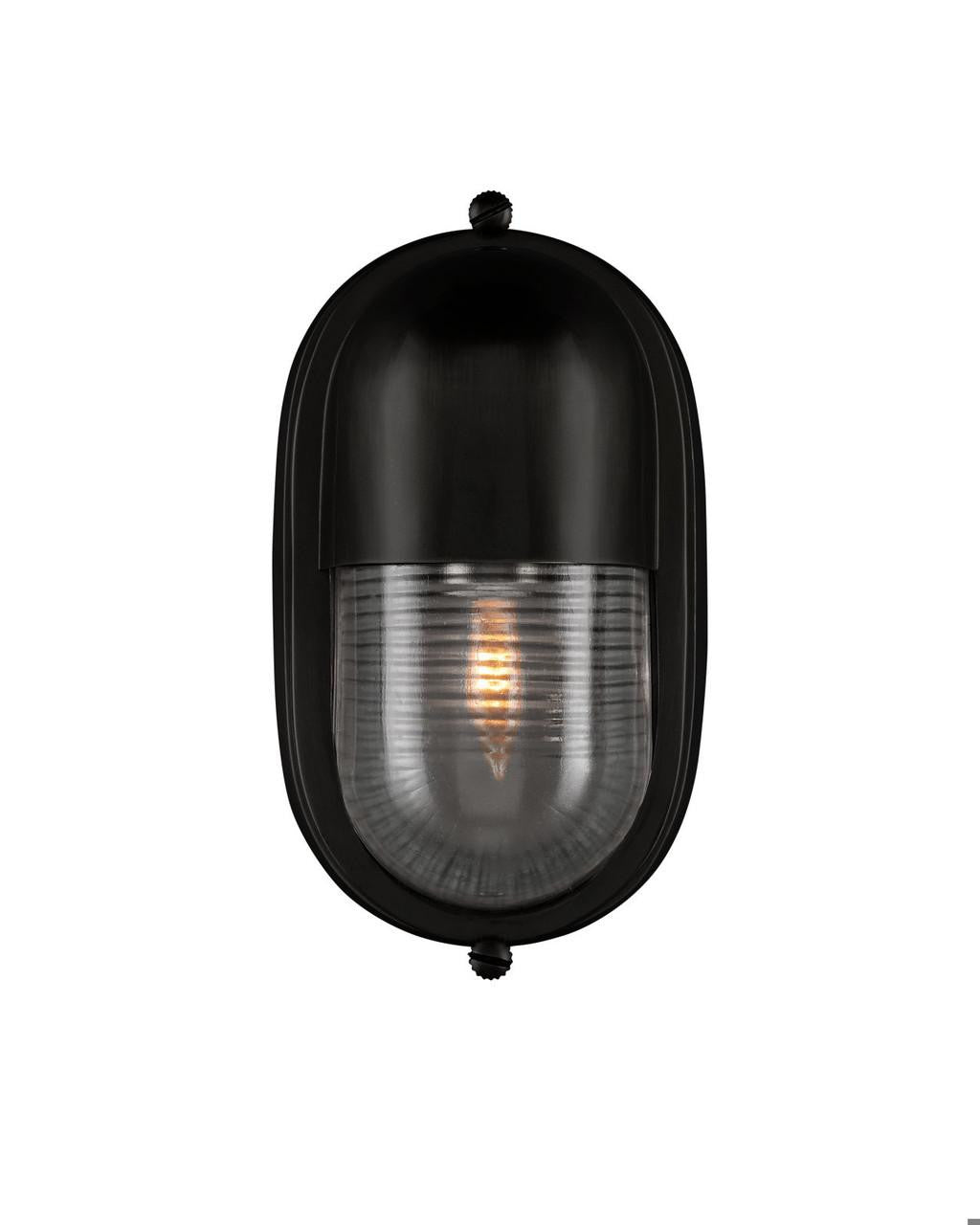 The Maritime Black Outdoor Wall Sconce has its sea legs, so to speak, given it has the quintessential design attributes that have sailed the oceans for centuries. The matte black brass body holds the ribbed glass shade in place has depth even when the lights are off. This black outdoor sconce is a perfect choice for coastal environments given its stylistic notes harken to luxury yachts and schooners.