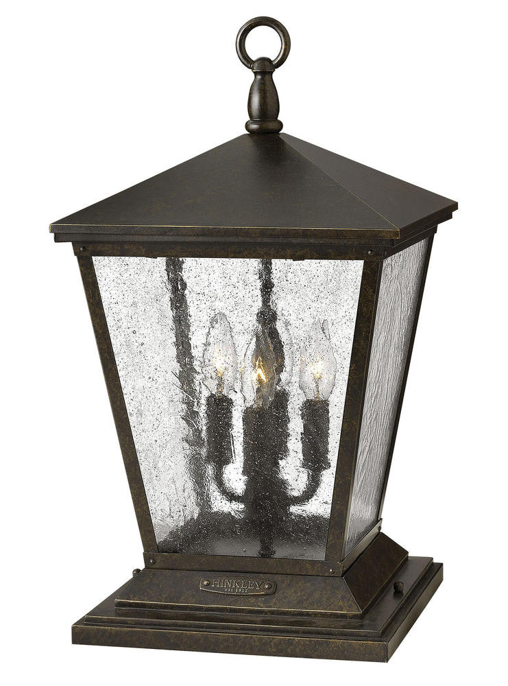 Trellis is a traditional European lantern design in an Aged Zinc finish with clear glass or Regency Bronze with clear seedy glass. The cast loop finial and true rivet detail create a refined elegance.