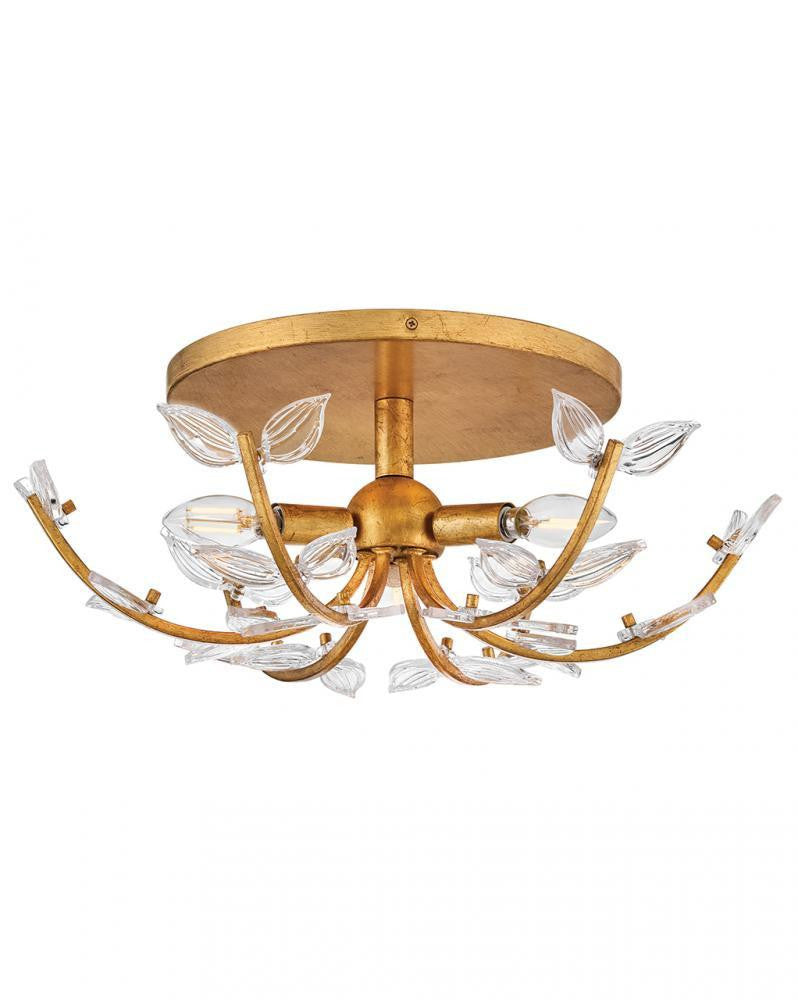 Feminine and romantic, AlisoÂ’s thin, delicate frame is adorned with dainty, clear, pressed glass leaves. A Distressed Brass finish makes a polished and luxurious statement in classic living spaces or modern dining rooms.