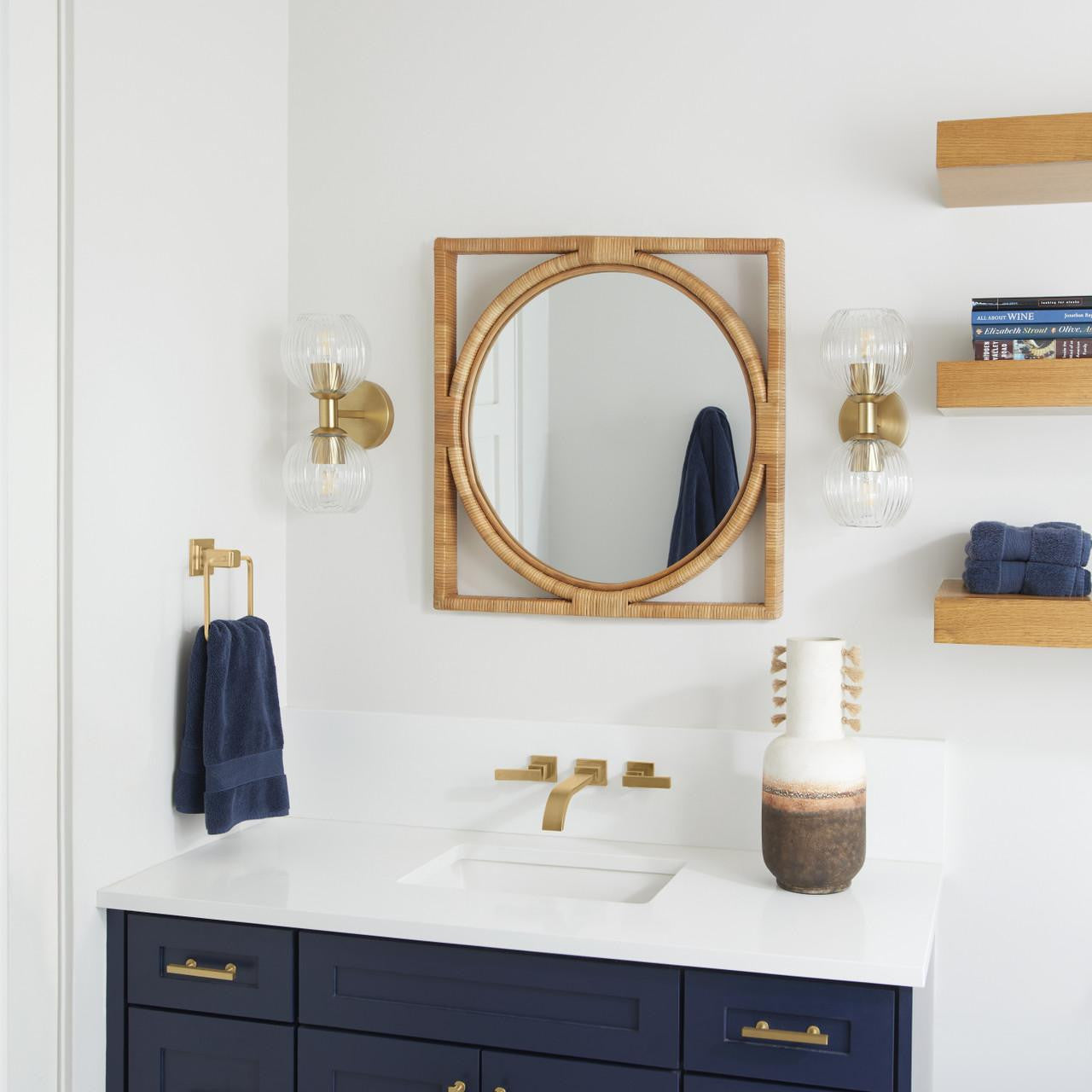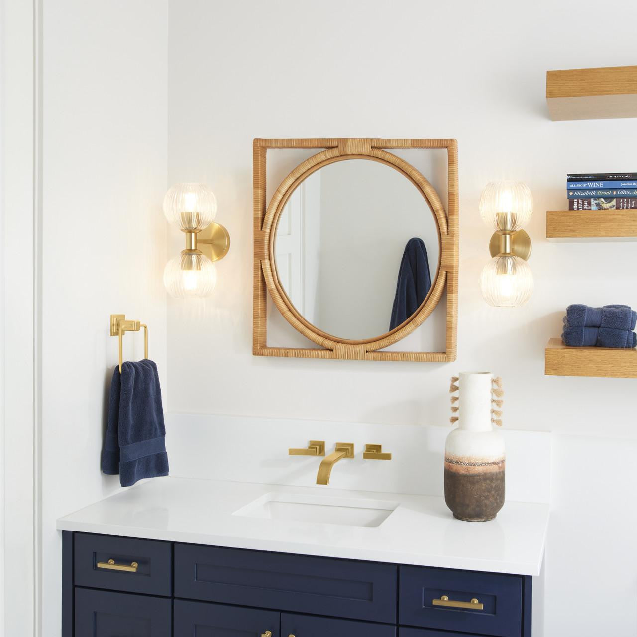 Named after an island off the east coast of Africa, the Pemba mirrors deliver energetic warmth through natural features. Split rattan is hand-wrapped over a steam-bent rattan pole frame of two segmented concentric circles with a mirrored glass center. Hang over a bathroom countertop or in a living room to add warmth and depth.