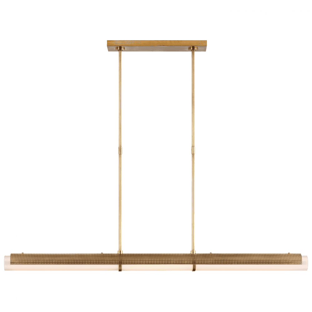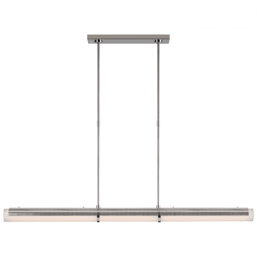 This linear chandelier is a stunning addition to any space. With its sleek design and high-quality materials, it is both functional and stylish. . The linear shape allows it to be used over a dining table, kitchen island, or any other long surface.Visual Comfort Signature, formerly known as Visual Comfort, offers a wide range of stunning lighting fixtures that are both functional and stylish.