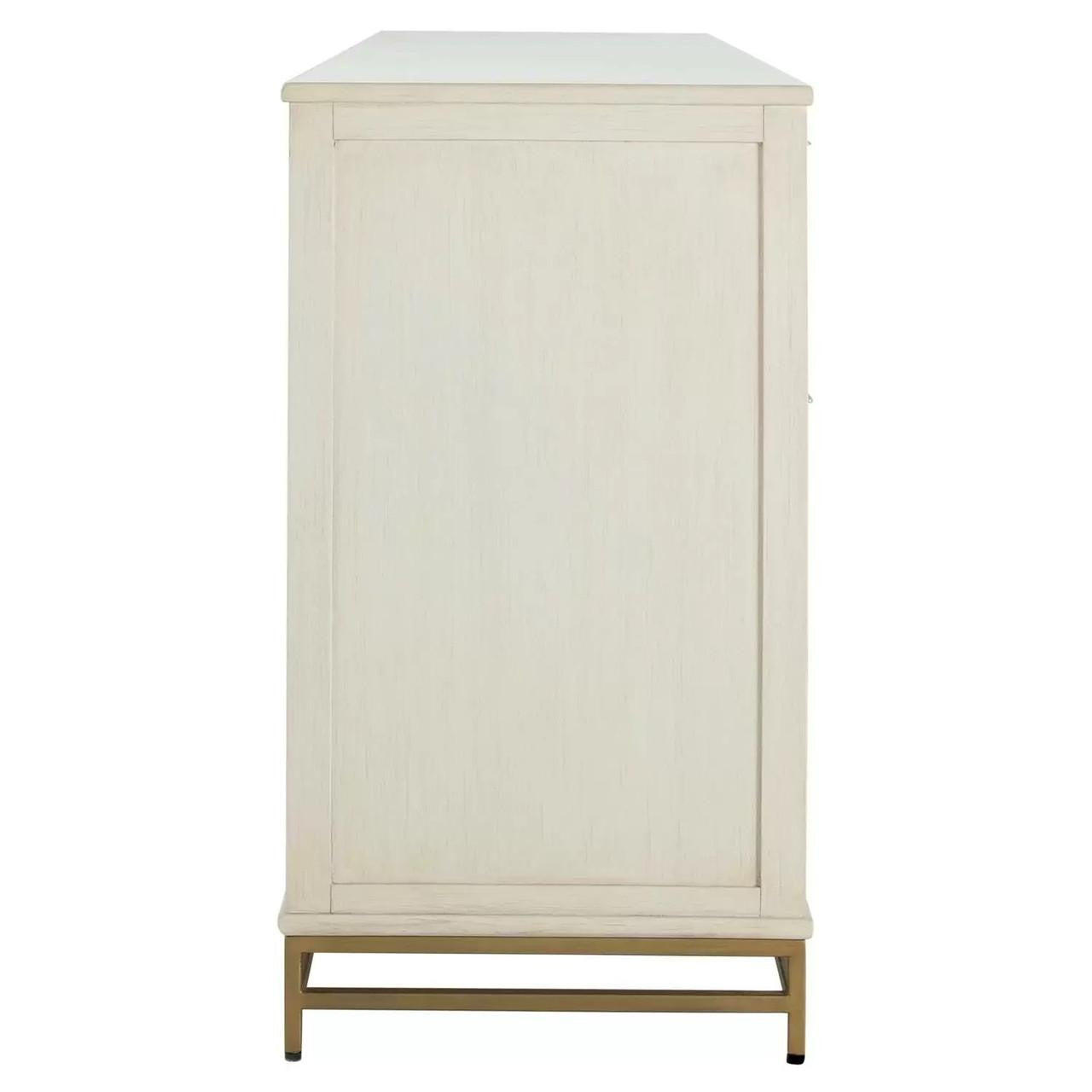 The Riggs Dresser blends contemporary style with classic elegance, making it a standout storage piece in any bedroom. Finished in a distressed antique white, this dresser is crafted from high-quality mindy wood and mindy veneer, accented with metal details. It features six spacious drawers, providing generous storage for clothing and essentials. The textured drawer fronts and sleek metal handles add a modern touch, while the sturdy metal base ensures durability with the added touch of refinement. The Riggs Dresser combines functionality with sophisticated design, enhancing the decor of any space.