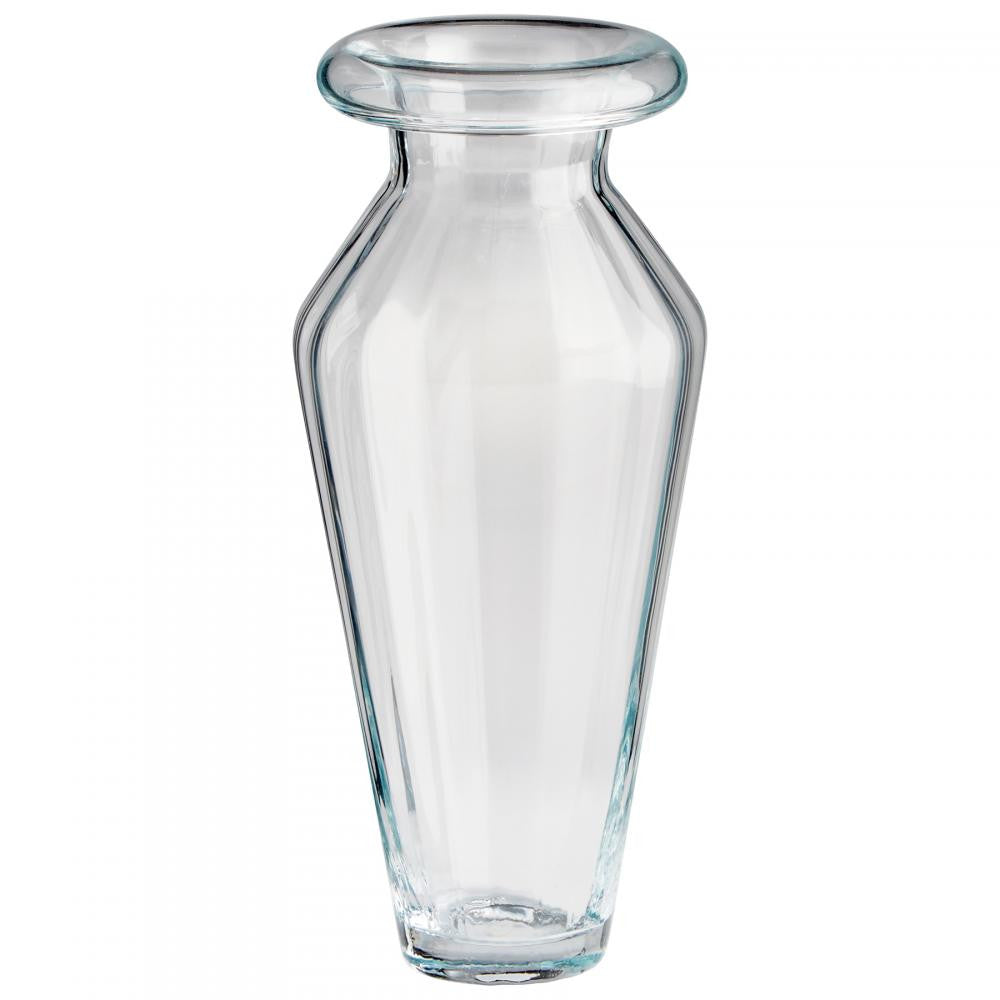 This clear, uniquely shaped medium Rocco vase will add an artistic flare to any room you choose. Display your favorite florals to add a dash of color.