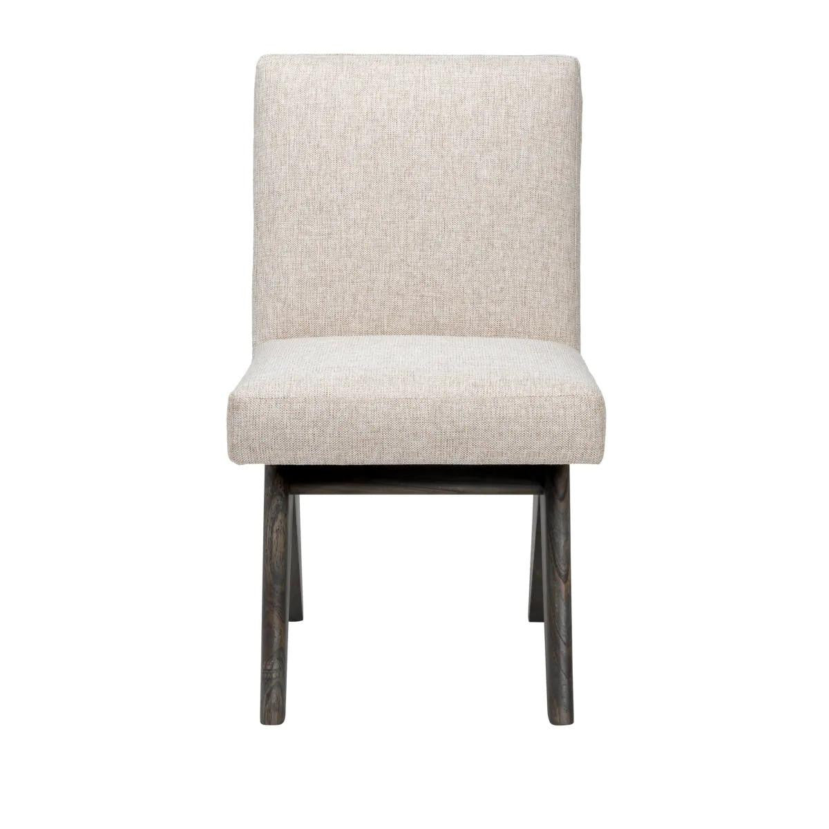 Dining Chair Erudit pairs quality with simplicity. This stylish armless chair is characterised by brown V-shaped legs of solid wood and a loki natural fabric upholstery. It will be a comfortable and stylish addition to your home, whether you use it as a functional seat in your dining area or as an accent chair in your bedroom.