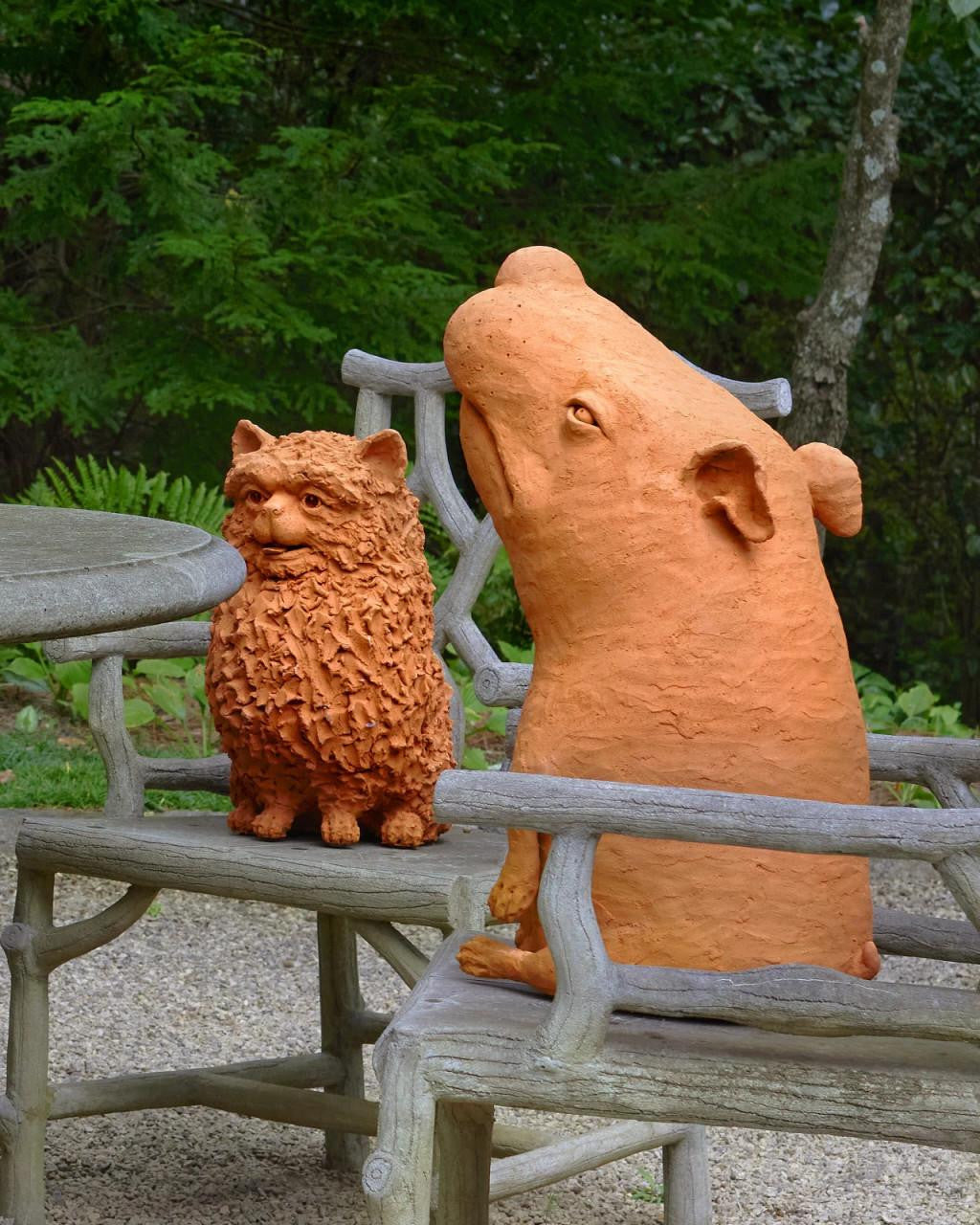 Whimsical in terracotta, Sam the Mutt is a sculpture by the emerging Thai artist Nhut Nhathawut. with an expression that is so lifelike that it feels he may bark at any moment, there are a number of artisanal aspects to the canine sculpture. This includes the obvious strokes of the artist's tools that play along the surface of the dog's body. Brownlee Currey had some fun with this mixed-breed, describing his reality as, "There may be some bulldog in there, but Sam’s mental and physical acuity is more akin to a potato than a sporting breed."