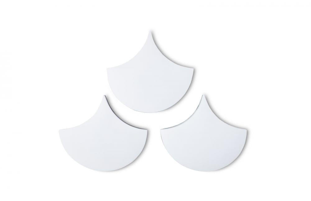 The Scales Silver Wall Tile Set would read to the mind as a simple teardrop shape hung alone; when grouped the curvy decorative elements become fish scales - thus the name. Made of composite in a silver leaf finish, these tiles are luminous design elements in any space, and they create a fun gallery wall installation when a number of sets are combined. We also offer the Scales in a glossy white finish. Each of these sets of decorative wall art reflects the ethos that the Phillips Collection personifies: modern organic.