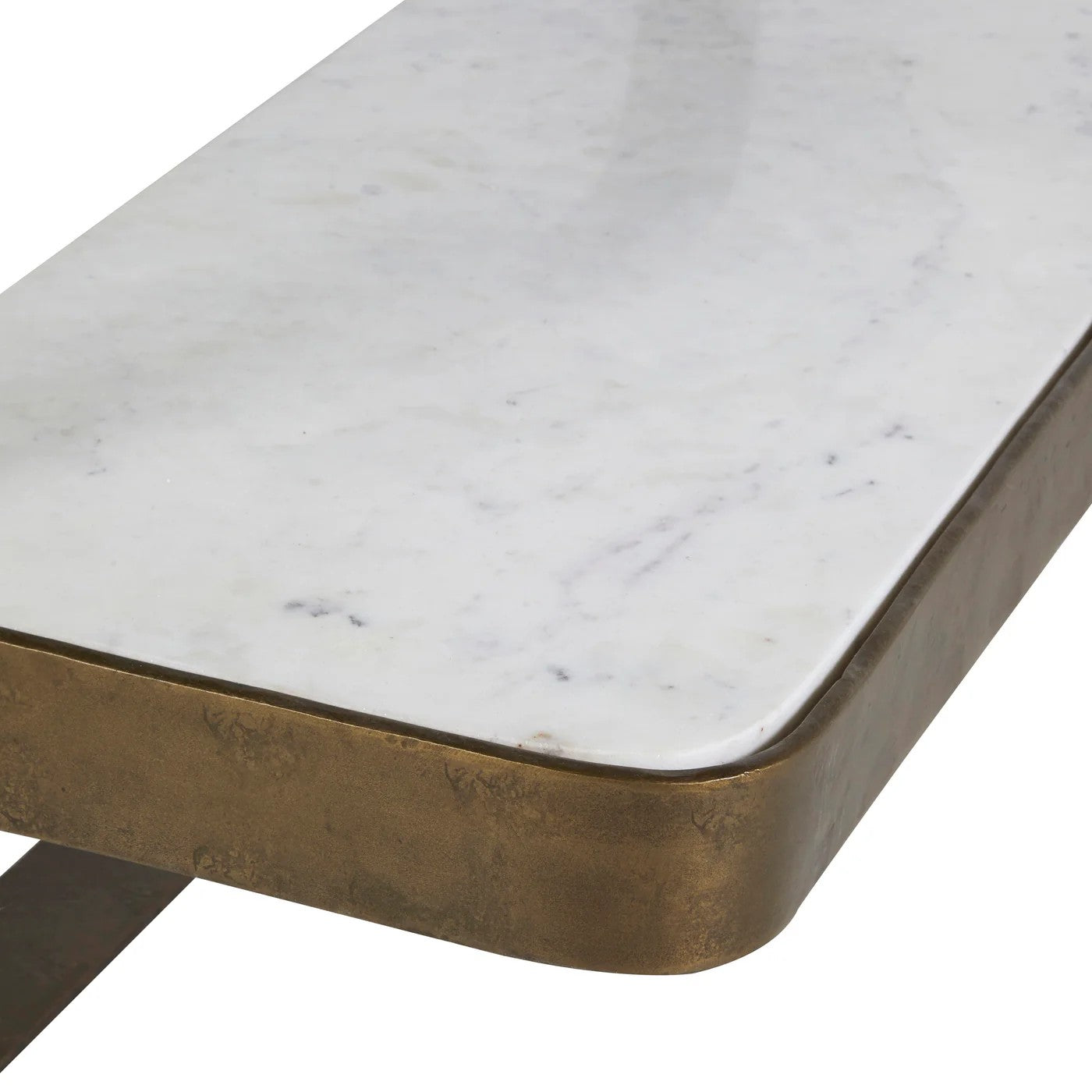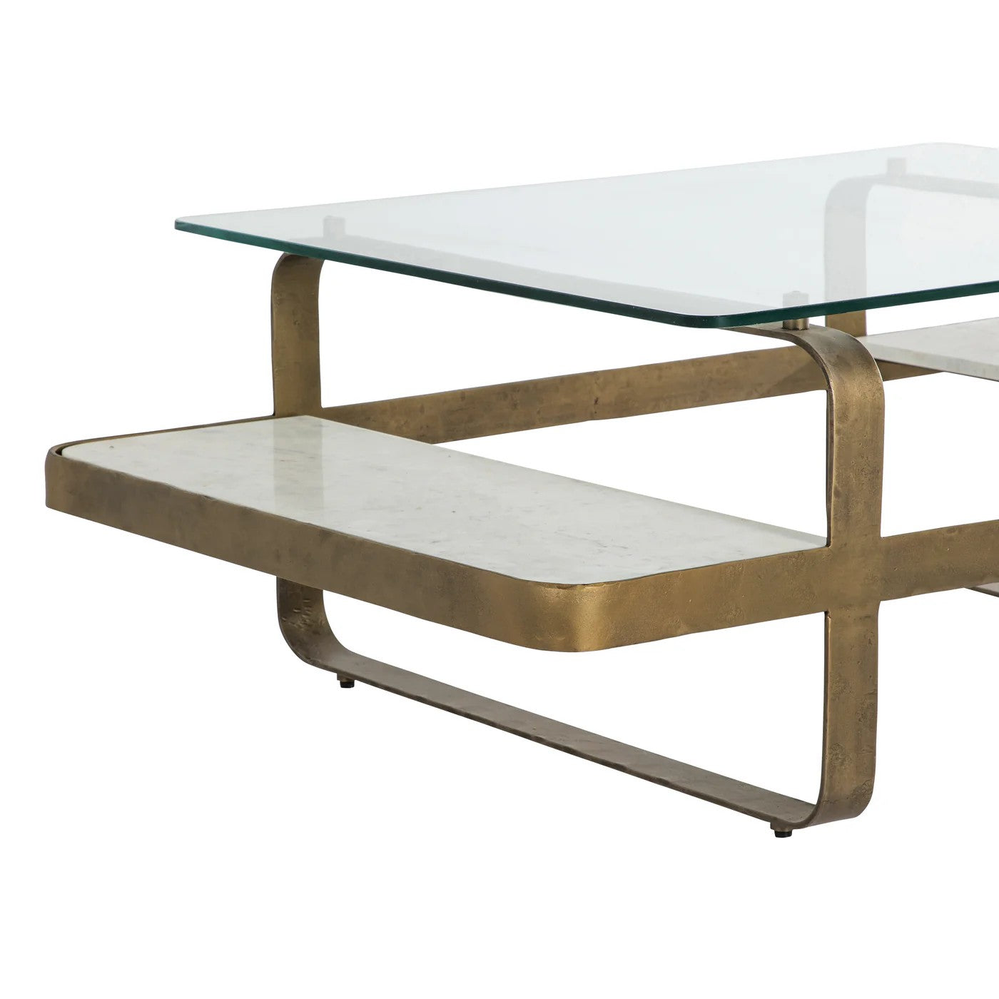 Inspired by primitive art with a dash of modern design, the striking Winnipeg Coffee Table is a showpiece in any setting. A textured metal frame supports a floating glass tabletop & marble side surfaces, creating a perfect harmony of materials.