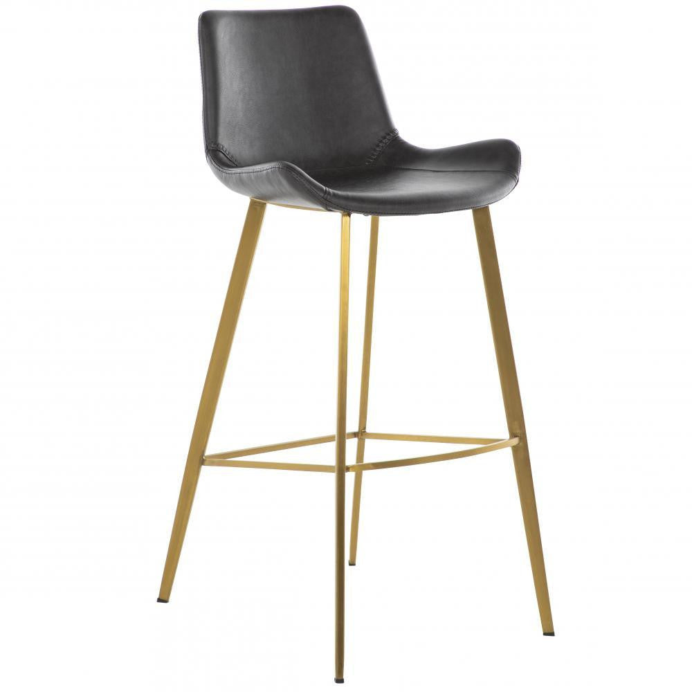 Sumptuous dark charcoal brown faux leather brings gravitas to the Hines Bar Stool. With brushed gold metal legs and footrest, the Hines is the quintessential bar seat, offering classic looks & comfort. Leather might show a different color shade under different lighting.