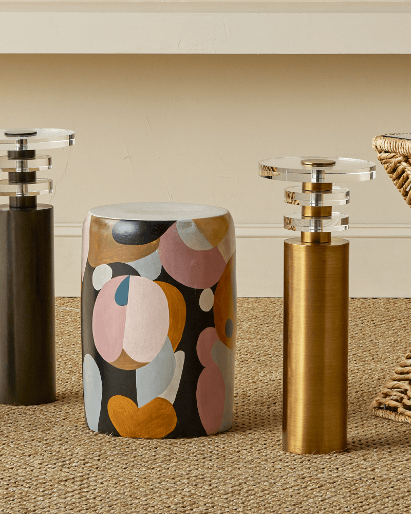 Made of terracotta with blue, pink, black, rust, and yellow pops of color, the So Nouveau Pink Accent Table belongs in the Art Decoratifs, or Art Deco, category thanks to its strong hues and graphic qualities. The elegant multicolored accent table has a shape that will add interest to its spot in a room. Because this colorful table is hand-painted, it is an artisanal piece and the patterns may vary slightly from piece to piece.