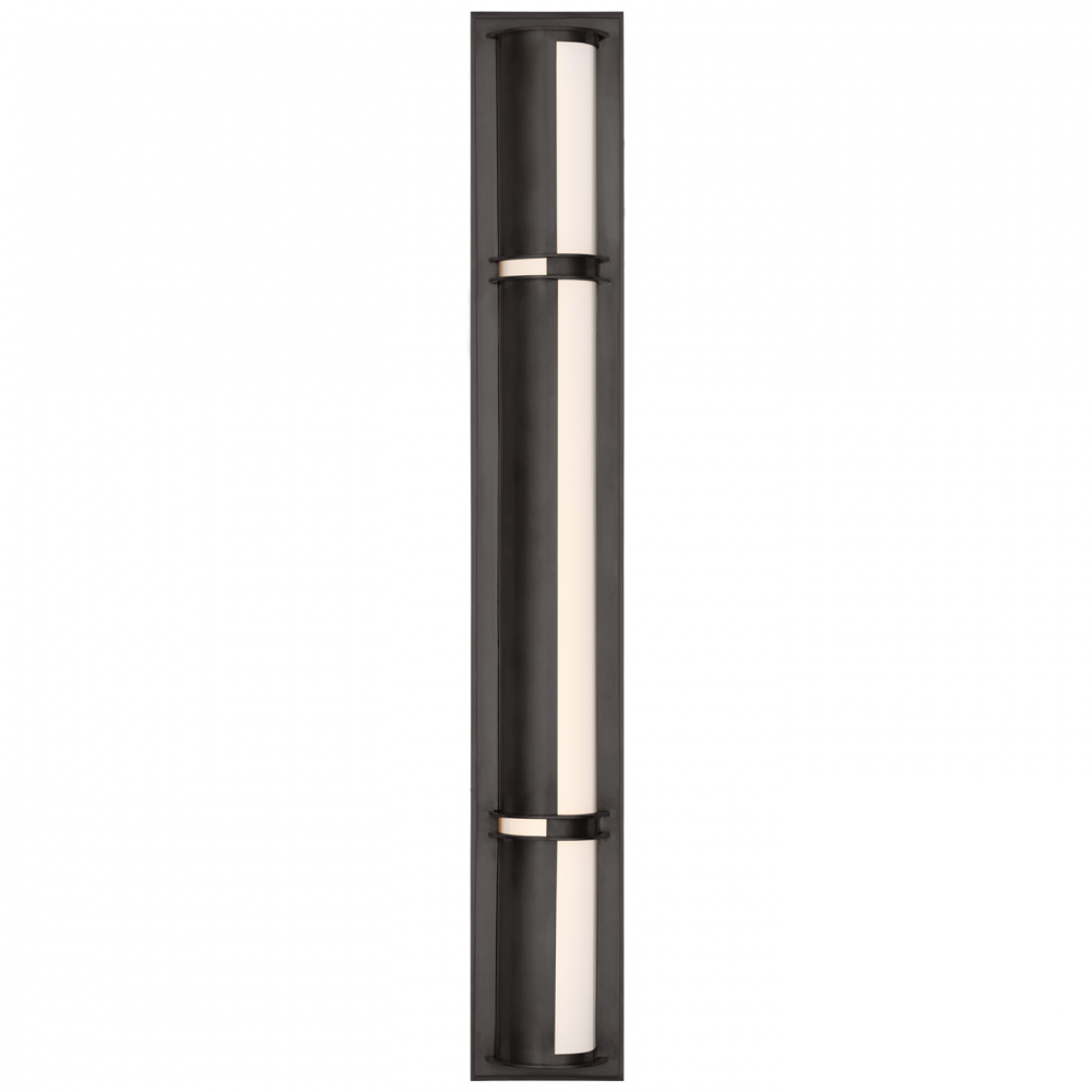 The Strever by Ralph Lauren takes its art deco inspiration from a Chicago skyscraper. Conical, milky white glass with warm LED lighting is secured in an asymmetric metal frame, available in bronze, polished nickel or natural brass. Modern and vintage feeling at the same time, the bath lights will cast an even glow on either side of a mirror, while a series of sconces can line a hallway.