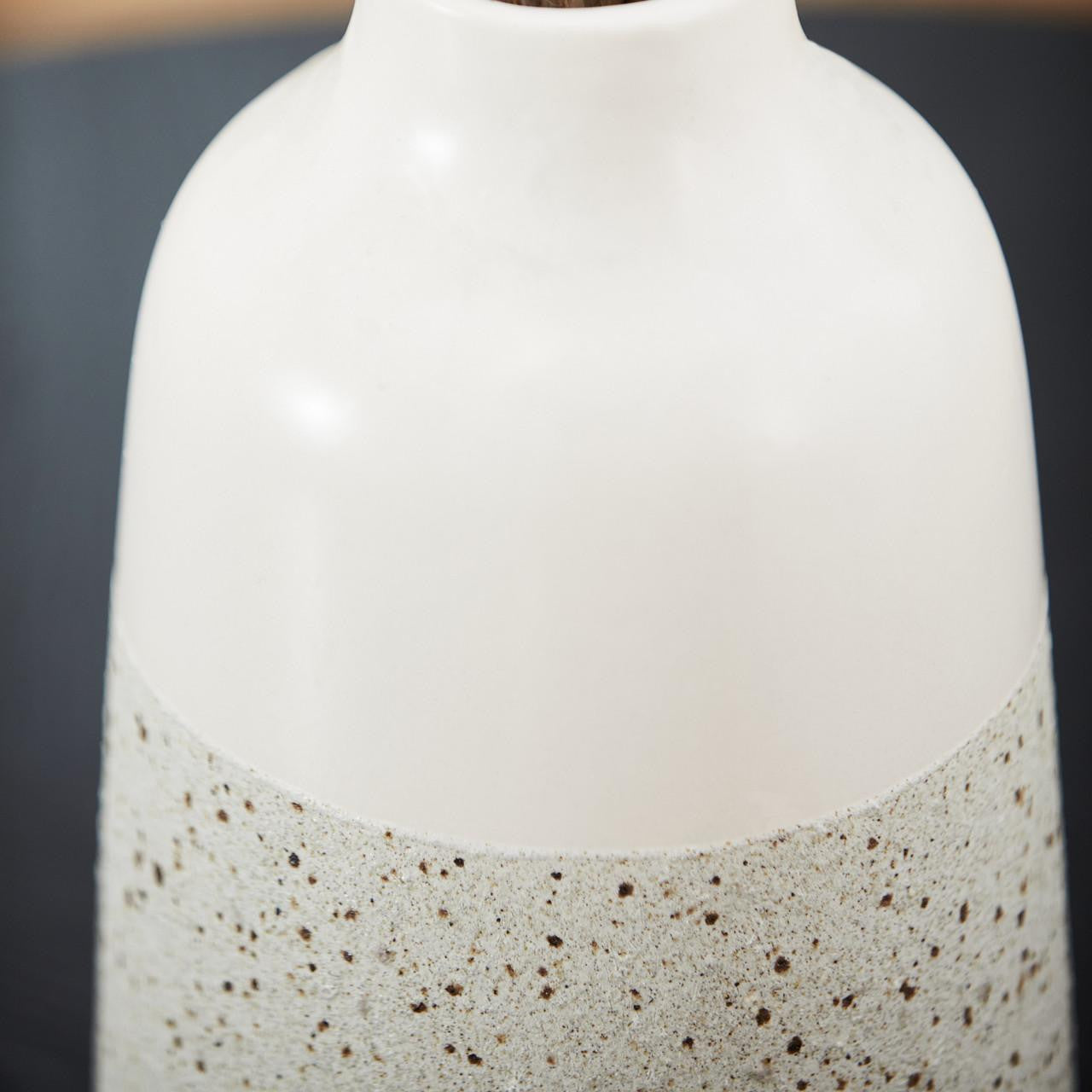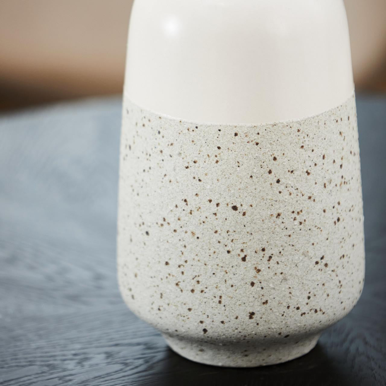 This elegant vase has two-tones and two finishes. Its body is made up of a grainy white charcoal texture. It is a great choice for modern and natural aesthetics. With three available sizes, this accent is perfect for your fire mantle plans, coffee table styling, or entryway console decor.