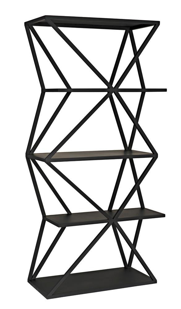 Industrial strength steel framing creates the modern unique Sutro Shelf. The metal is finished simply in matte black to give a sophisticated & contemporary vibe.