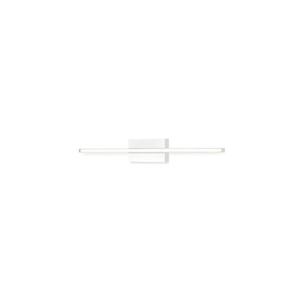 Square profile linear aluminum with rectangular wall mount. Optional adapter plate for larger junction box. Inset opal polymeric diffuser. Finely textured plate or powder-coat finish. Outward-emitting light.